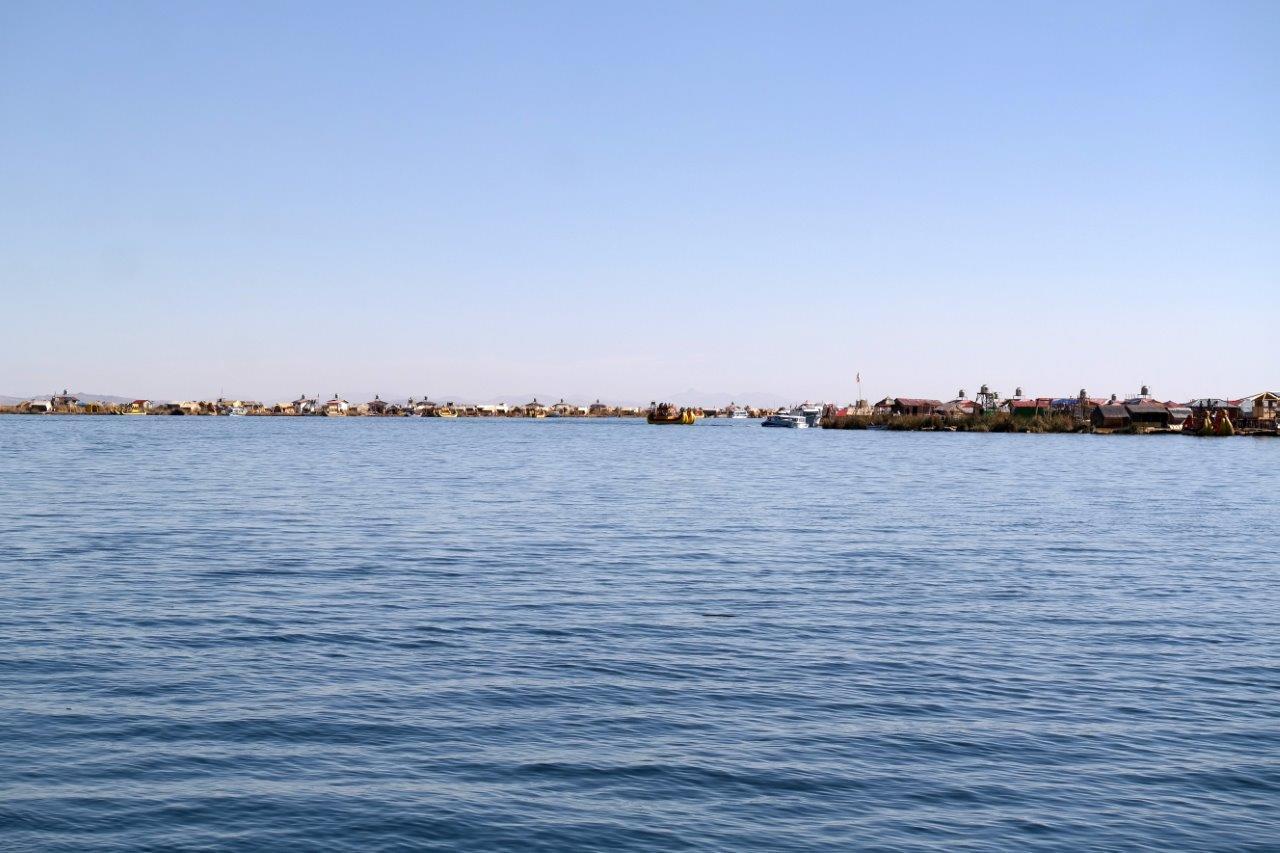 Efter ca. en halv time når vi ud til Las Islas Uros, de flydende øer. Her kommer mange turister på besøg hver dag, og det er en væsentlig indtægtskilde for øernes beboere, men man koordinerer det, så hver ø kun får besøg én gang om måneden. Vi skal besøge en ret lille ø, hvor der bor 25 mennesker, og det er meget specielt at gå i land, da bunden giver sig noget mere, end vi havde forestillet os.