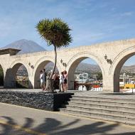 Ved selve udsigtspunktet er der en række hvide buer, hvor der er udsigt til de tre vulkaner, som omkranser byen, Misti, Picchu Picchu og Chachani. Her er sat borde og stole op, men der er ikke nogen servering, så den første gang går vi hen til en bager og køber en sodavand og et par kager og sætter os og nyder udsigten. En af de andre gange får vi et bord på restauranten El Charrua Arequipa, hvor vi drikker en øl og deler en grillet Provolone-ost.