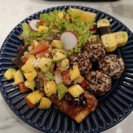 De har mange gode retter på menuen med lækkert tilbehør i form af både kartoffelmos, grøntsager og god sovs. Vi får flere forskellige velsmagende retter med kylling og laks, og deres spaghetti & meatballs er også rigtig lækker. Betjeningen er god, men desværre går de alle med mundbind, så vi lærer dem ikke rigtig at kende.