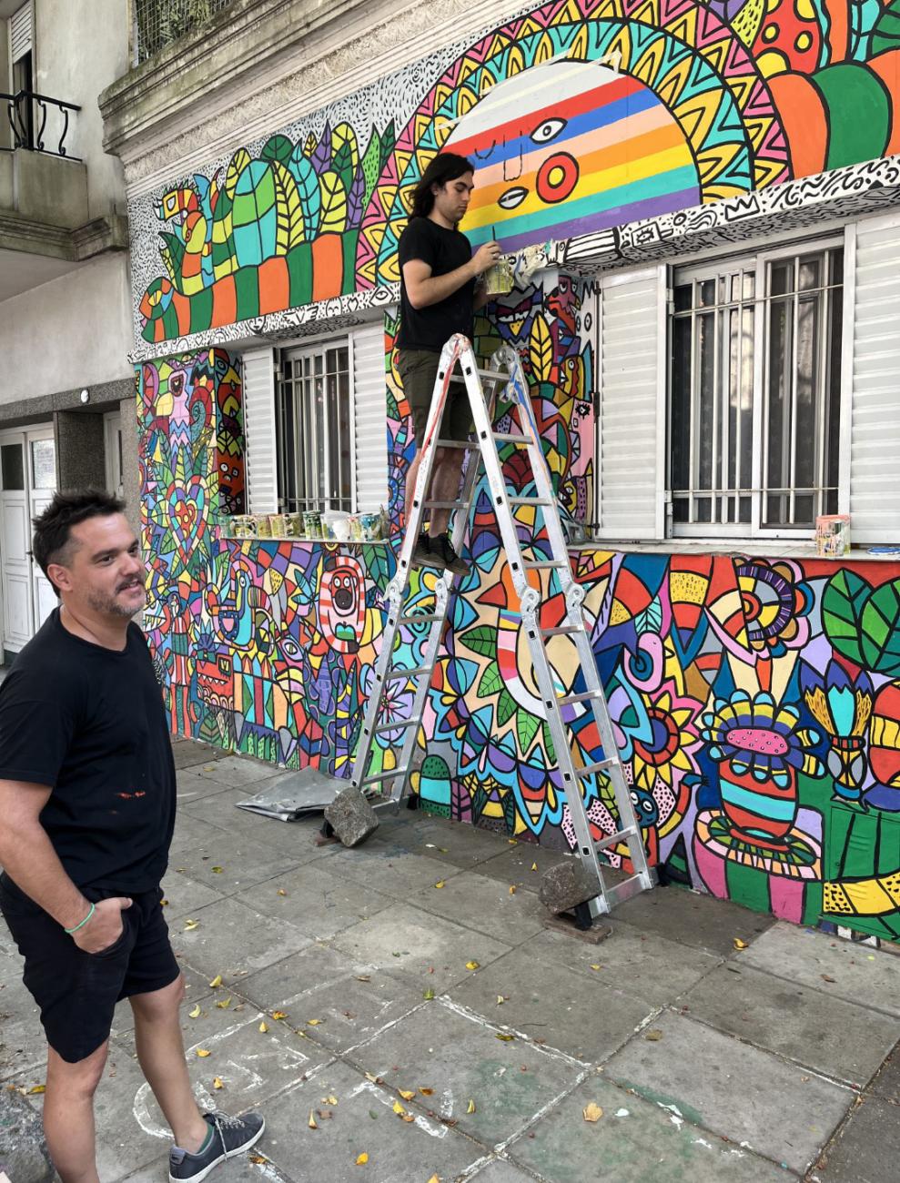 Hele området er helt utrolig fredeligt med mange smukke huse, og det består stort set kun af beboelse og ganske få butikker. Der er en enkelt restaurant og en café, men ellers må man søge andre steder hen, hvis man vil ud at spise. Vi går rundt i gaderne, hvor vi ser en masse flotte vægmalerier af lokale kunstnere, og vi besøger en kirke, hvor brudgom og gæster venter på bruden, så vi lister hurtigt ind og ud igen. Kirken har et helt specielt billede af Den sidste nadver med motiver fra Buenos Aires. Vi kommer forbi et hus med mange fantastiske dekorationer, som tilhører direktøren for Disney Channel i Argentina. Hele familien begyndte at dekorere huset under COVID og er nu ved at lægge sidste hånd på værket, og han kommer tilfældigt ud, da vi kommer forbi, og han fortæller lidt om projektet.