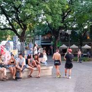 Syd for Santa Fe er der et hyggeligt område omkring vejen Charcas, hvor vi kommer et par gange. Vi finder bl.a. en hyggelig og meget lille sushirestaurant, som er ejet af en italiener. Går man længere vestpå herfra, kommer man til området omkring Plaza Serrano, som nok er det sted, de fleste forbinder med Palermo, også kaldet Palermo Soho. Her er mange restauranter, og det er her, man går i byen, når der skal festes. Det er et område med mange expatter og turister, og efter at have besøgt det et par gange er vi glade for, at det ikke er her, vi bor. Her er umiddelbart hyggeligt, og vi besøger Plaza Serrano en søndag eftermiddag, hvor her er marked og masser af mennesker, men det er stort set umuligt at finde en ordentlig restaurant. Her er masser af værtshuse og sikkert alt for meget gang i den om aftenen efter vores smag.