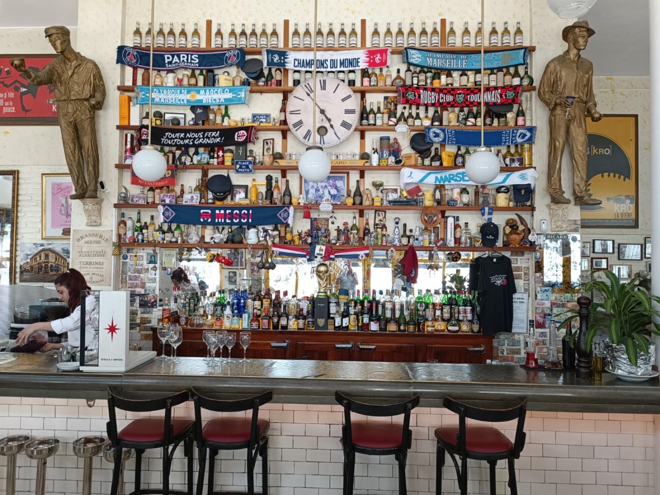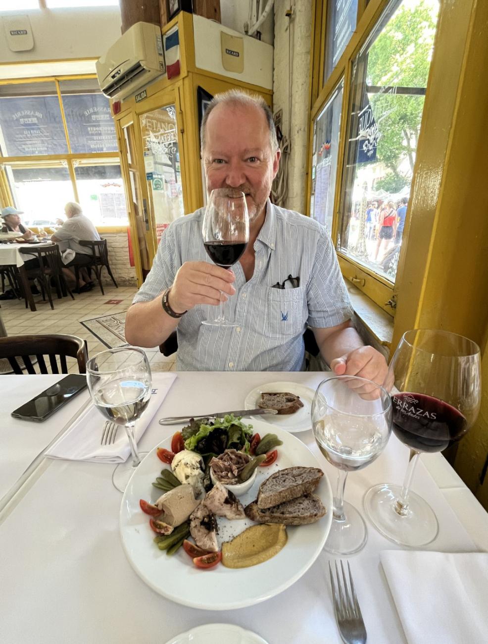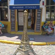 Brasserie Petanque er en fransk restaurant i San Telmo, som Jens Peter finder på nettet. De har en miniudgave af Eiffeltårnet stående på fortovet, og da vi kommer forbi søndag eftermiddag på vores besøg i området, beslutter vi os for at spise en sen frokost. Her ser rigtig hyggeligt ud, og de har mange af de retter på menukortet, som vi har savnet længe.