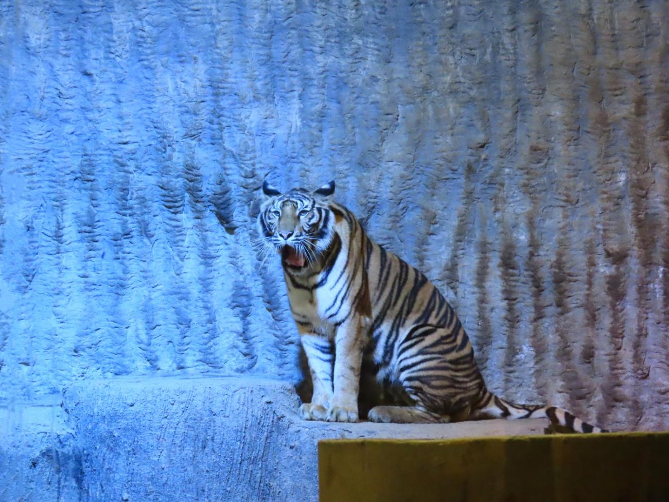 Da vi viser vores billetter ved indgangen, får vi udleveret et lille program, og vi finder ud af, at der er flere ting, vi kan tage os til, inden mørket falder på, og vi kan tage på deres natsafari. Vi starter med at gå en tur rundt om en meget stor sø, hvor vi ser mange dyr undervejs. Tilbage ved indgangen er det blevet tid til tiger- og løveshow, hvor vi sidder på bænke rundt om et lukket område med glas hele vejen rundt. Det er meget sjovt, men vi tvivler nu på, at dyrene har det specielt godt. Derefter er der et lille danseshow ved søen samt et større vand- og lysshow med musik, som er meget flot.