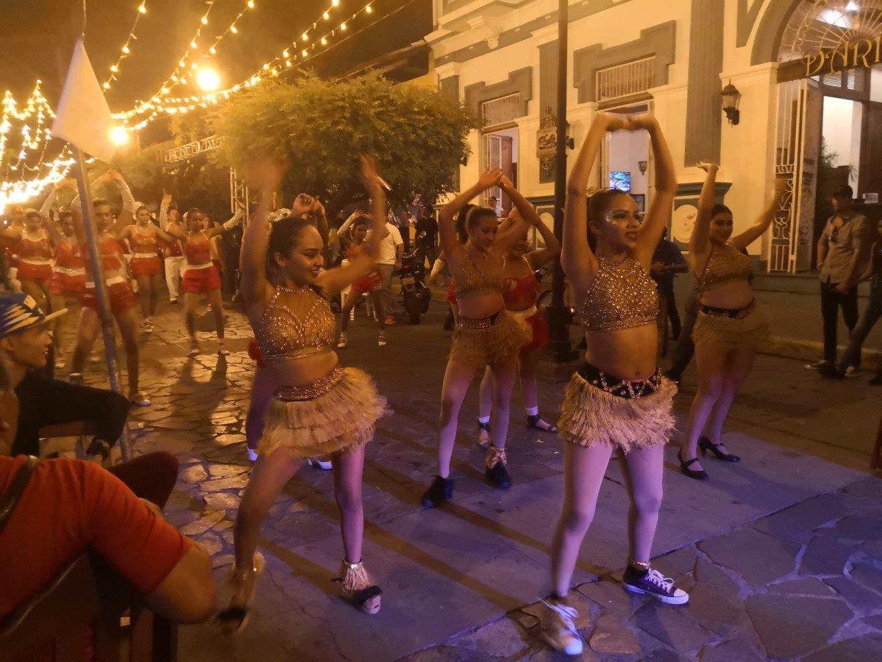 Den ændrer sig utrolig meget, mens vi er her. Da vi lige er ankommet, er vi kortvarigt dernede et par gange og drikker også en øl på et tidspunkt. Vi bliver dog hurtigt enige om, at det ikke er noget for os. Der er et virvar af mennesker, alle tjenerne står med menukort og forsøger at kapre kunder, der er sælgere af alverdens skrammel, tiggere, nogle udklædte mænd på stylter og en del hjemløse hunde, der konstant tigger mad ved bordene – derudover drøner musikken ud af diverse højttalere. En aften er der et optog ned gennem gaden, hvilket er meget festligt. Jens Peter køber et armbånd dernede.