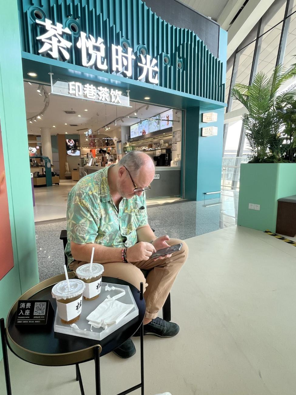 Vi skal tjekke ud fra hotellet kl. 12, men vi har fået lov at blive på værelset et par timer ekstra og tager en DiDi til lufthavnen fra hotellet kl. ca. 13.30. Da vi skal indtjekke vores bagage, vil de have betaling for vores tredje kuffert, til trods for at vi kan fremvise kvittering for, at vi har betalt for den, da vi købte billetterne. Den information har de åbenbart glemt at taste ind, da de ændrede vores billetter. Lufthavnspersonalet, som ikke er ansat af flyselskabet, tør ikke tage ansvaret, så de kontakter Xiamen Airlines, og vi ender med at bruge mere end en halv time på, at de diskuterer frem og tilbage. Her er utroligt varmt, og vi er godt irriterede, men vi slipper dog for at betale.