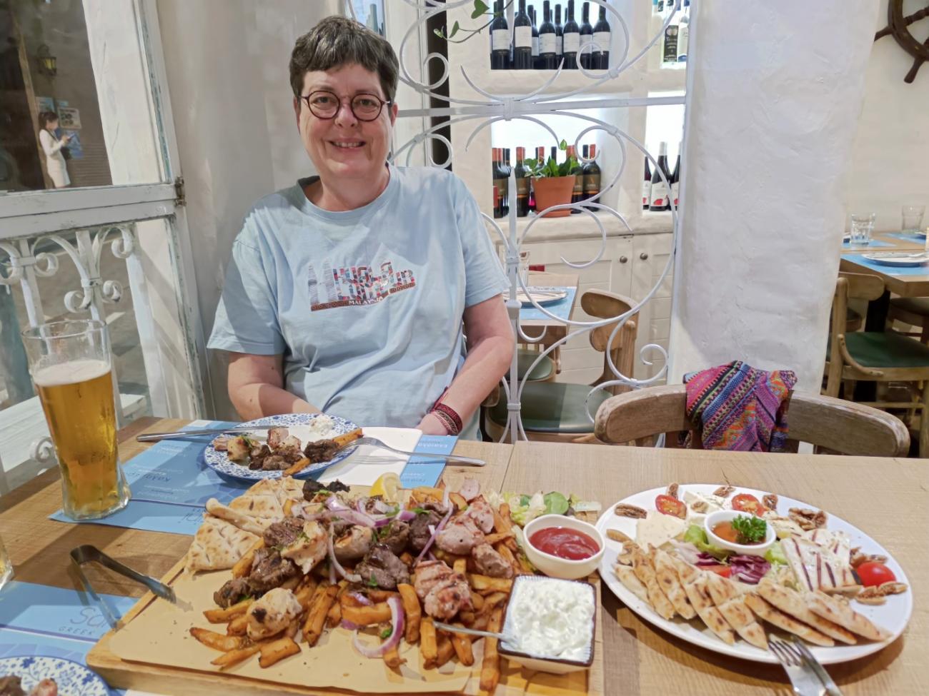 Der er mange gode restauranter i Hongkong, men da vi kun har 12 dage, er vi nødt til at begrænse os. Juno ligger forholdsvis tæt på hotellet, og her får vi både lækker paté, serransoskinke og oksekød samt lidt tunmousse på husets regning. På den græske restaurant Santorini Greek Restaurants i området SoHo bestiller vi en souvlaki-tallerken til to personer samt en ostetallerken, da vi også har lyst til fetaost og halloumi-ost. Det er meget lækkert, men der er rigtig meget mad, så vi må desværre levne lidt. Lidt længere nede ad gaden ligger den franske restaurant Bouchon Bistro Français, og her får vi et lille charcuteribræt til forret og derefter den bedste steak indtil nu i hele Asien og ovenikøbet med bearnaisesovs.