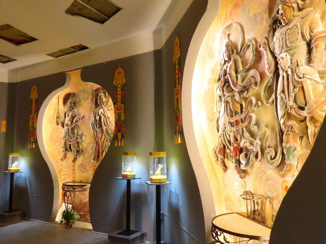 Månepagoden blev bygget på en ø i Shanhu-søen og er beklædt med glaserede teglsten, og går man ned i kælderen, kan man komme over til Solpagoden ved at gå gennem en tunnel, der ligger under søens overflade. I kælderen finder man også et fint museum, men det ødelægger lidt oplevelsen, at de ansatte sidder og sover med hovedet hvilende på et bord. Solpagoden er den højeste bronzepagode i verden og er en af de få pagoder i verden, der har en elevator. Fra toppen er der en fin udsigt til bjergene, men her må man ikke fotografere, så vi må et par etager ned, så vi kan tage billeder ud ad vinduet.