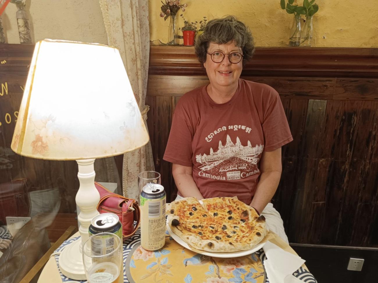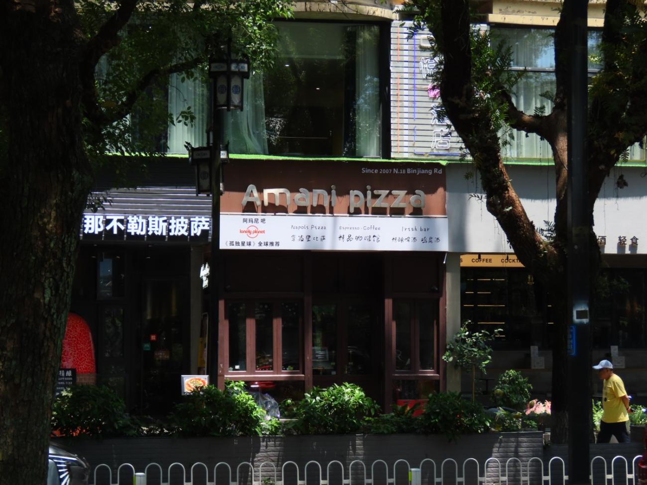 Amani Italian Restaurant ligger på vejen, der går langs med floden, og det er her, vi spiser den første aften, hvor vi hygger os med at snakke med flere andre gæster, bl.a. venner af huset. De laver nogle rigtig gode pizzaer, og vi besøger dem to gange mere. Ved siden af ligger Neapolitan Pizza, men deres pizzaer er ikke nær så gode, så der kommer vi kun én gang. Vi besøger restauranten McFound i området East West Alley, og her får vi god mad, selvom de fleste af deres retter med steaks er udsolgt. Vi spiser en enkelt gang på KFC, og selvom vi ikke er meget for at indrømme det, bliver det til flere besøg på McDonald’s over for Guilin Central Square. Det er så en af de pæneste og reneste McDonald’s, vi nogensinde har besøgt.