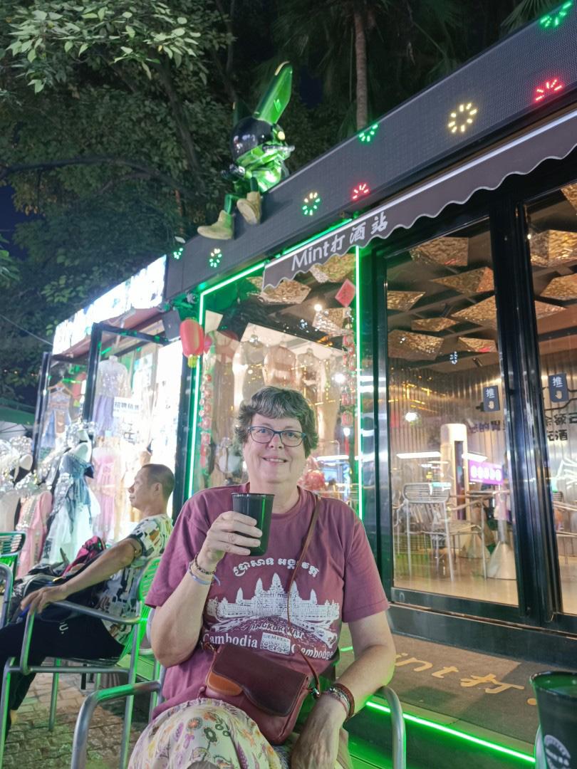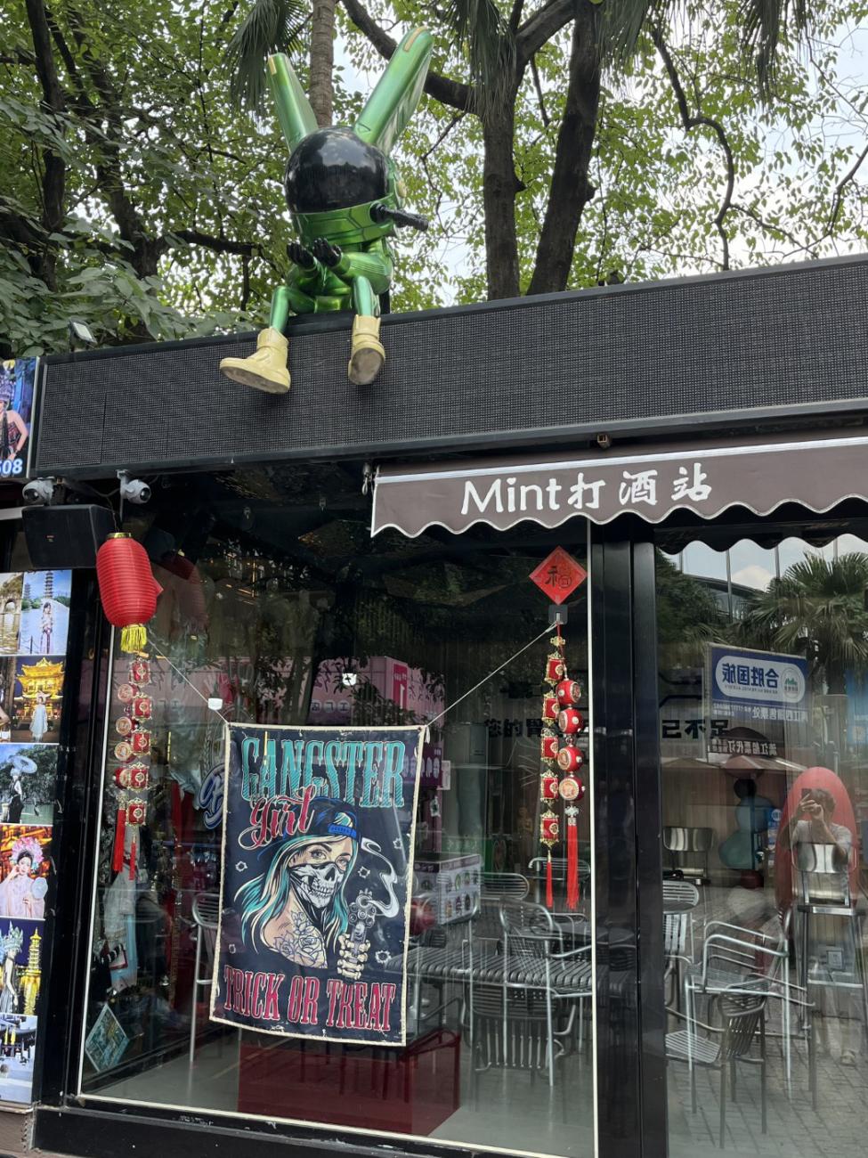 Vi besøger den lille ølbar Mint nogle gange. Den ligger på gågaden tæt på søerne, og de har en god hvedeøl, men har desværre hver gang udsolgt af deres stout. Her er hyggeligt at sidde om aftenen, hvor mange mennesker går forbi, men her er også meget varmt. Vi besøger en enkelt anden bar i vores område, hvor vi får en god stout, men der er kun en enkelt anden gæst ud over os. Vi besøger også en bar i området East West Alley en enkelt gang, hvor der er levende musik. Her er meget få gæster, og man må desværre ryge, så vi sætter os udenfor. Baren ligger oppe på 2. sal, så vi kan sidde og kigge ud over området.