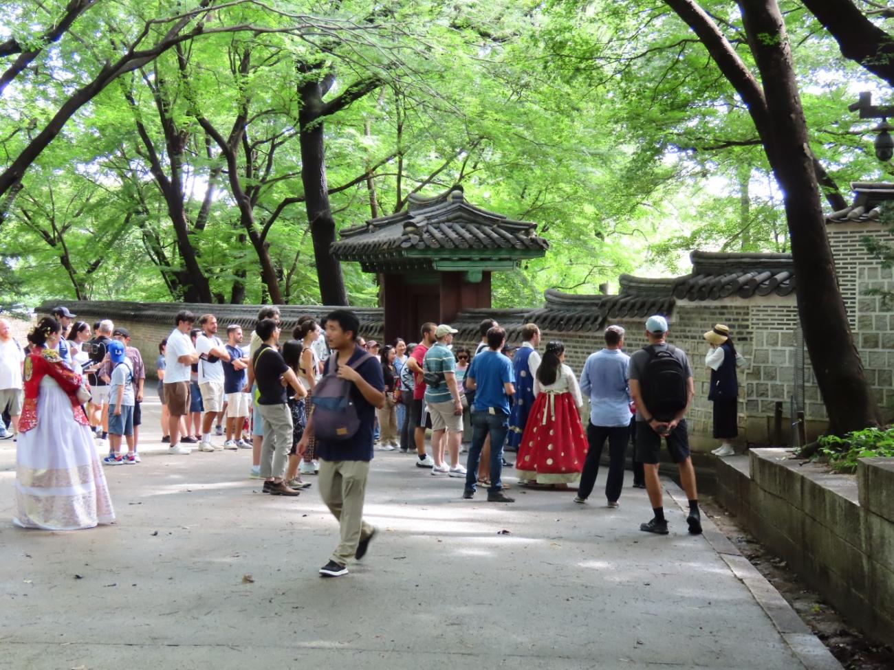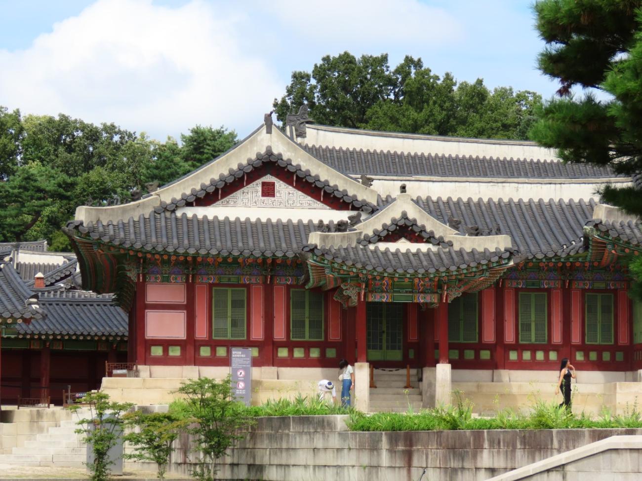 Changdeokgung-paladset ligger lige øst for Gyeongbokgung-paladset, og vi tager metroen et enkelt stop for at besøge det en eftermiddag i starten af september, hvor vi har det dejligste vejr. Changdeokgung-paladskomplekset er et tidligere kongeligt palads, der sammen med det nærliggende palads Changgyeonggung kaldes "Østpaladset". Det blev grundlagt i 1405, er på UNESCOs Verdensarvsliste og er blandt de bedst bevarede af alle koreanske paladser.