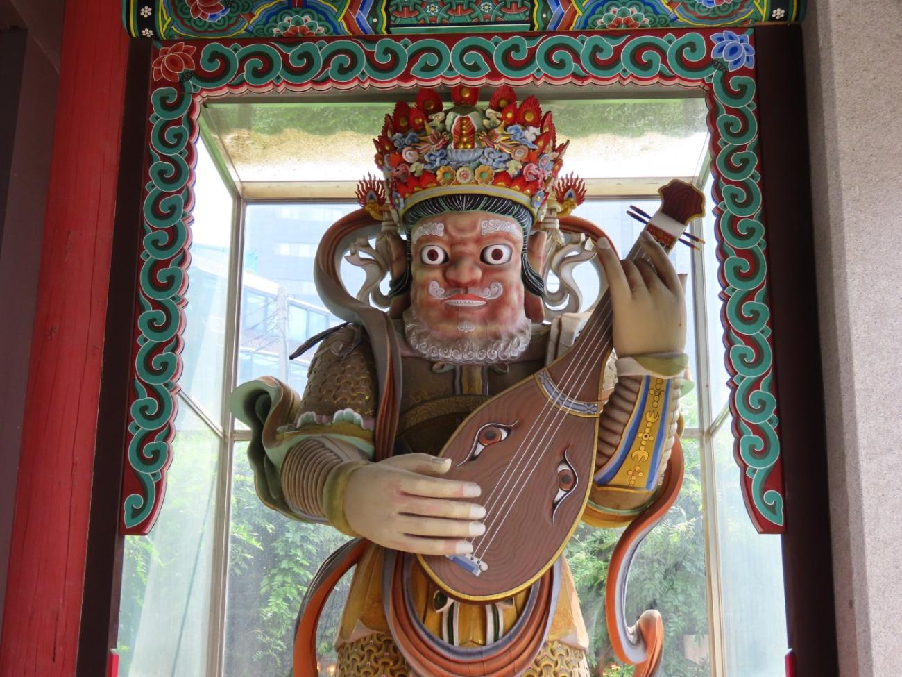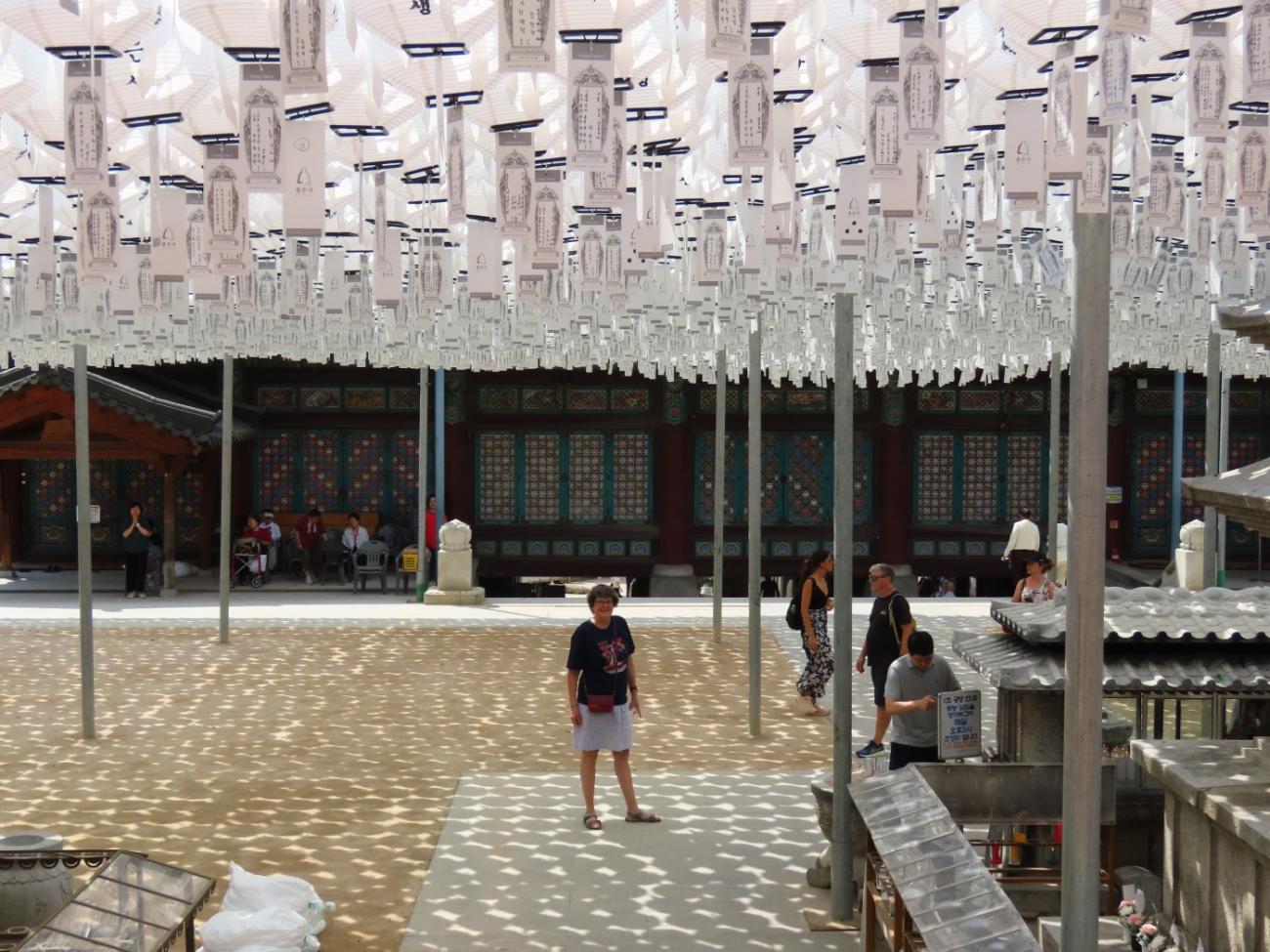 Vi starter med et besøg i det buddhistiske tempel Bongeunsa, som er mere end 1.000 år gammelt. Da templet blev bygget, lå det ude på landet, så der er sket en del, da det i dag er omgivet af højhuse. Selvom vi efterhånden har hørt en del om buddhisme og templer, gør Mark det nu bedre end de fleste, og vi får en fin rundvisning.