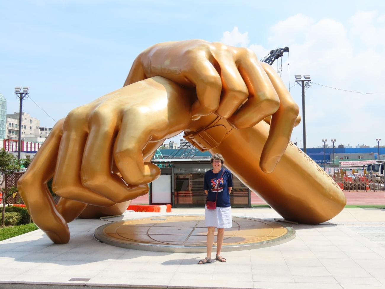 Vi går derefter over vejen til det underjordiske indkøbscenter Coex og starter med at sætte os udenfor på nogle bænke, hvor Mark fortæller om Sydkorea og Seouls historie og især om de sidste 50 års udvikling, hvor landet er gået fra at være et fattigt land til i dag at være en højteknologisk nation med bl.a. de superrige Samsung- og Hyundai-familier. Han fortæller, at kvinderne i Sydkorea har verdensrekorden i vokseværk, idet gennemsnitshøjden i det 20. århundrede steg med 16 centimeter, og vi hører også om den voksende industri inden for plastikkirurgi, hvor 30% af alle kvinder under 30 år vælger at blive opereret. De får primært rettet deres øjne, hvilket, vi synes, er lidt synd. Der kommer også folk fra Japan og Kina, primært kvinder, til Seoul for at blive opereret, og de får udstedt et specielt certifikat, som de kan vise i lufthavnen, da billedet i passet måske ikke længere ligner så godt.
