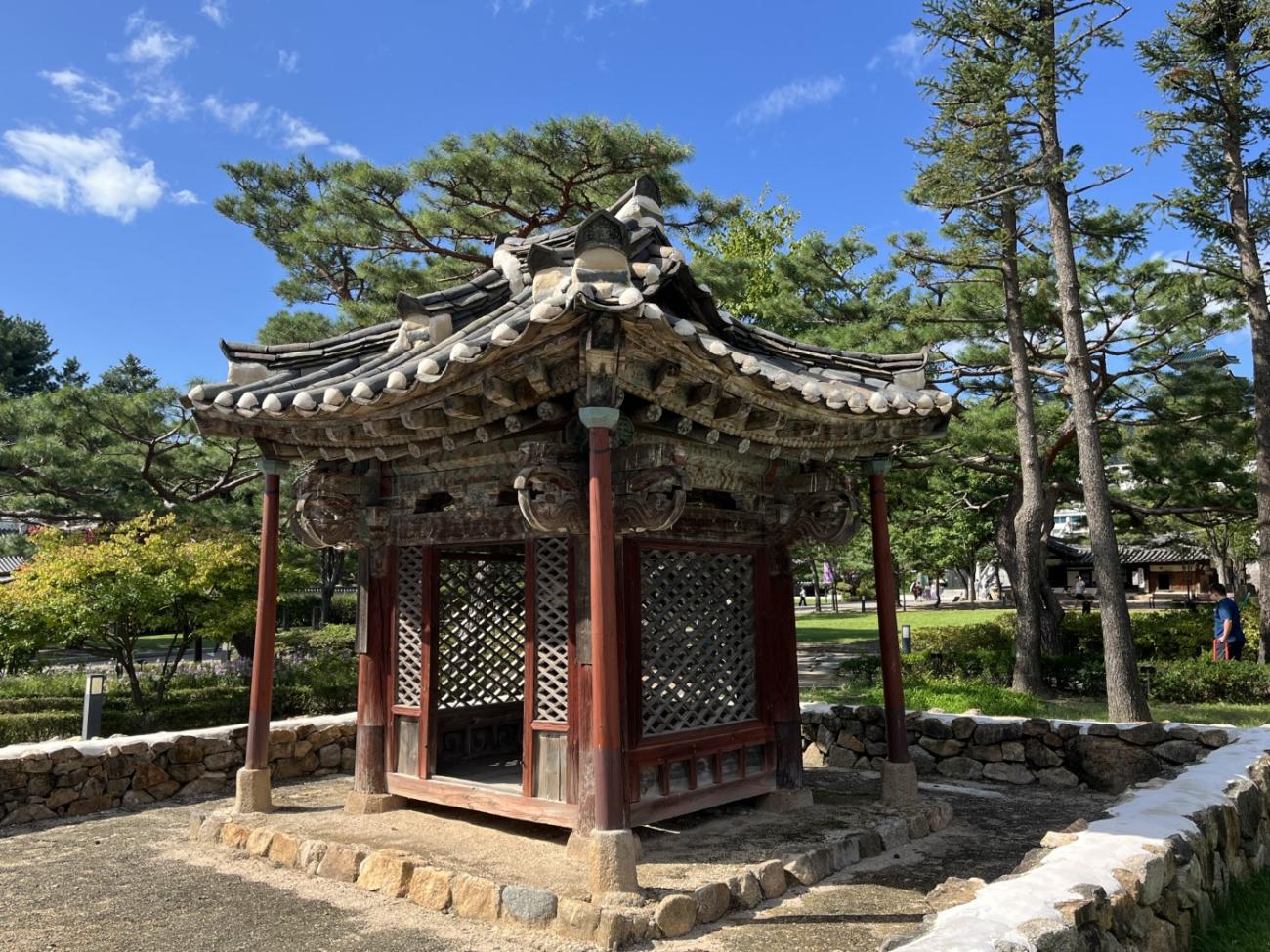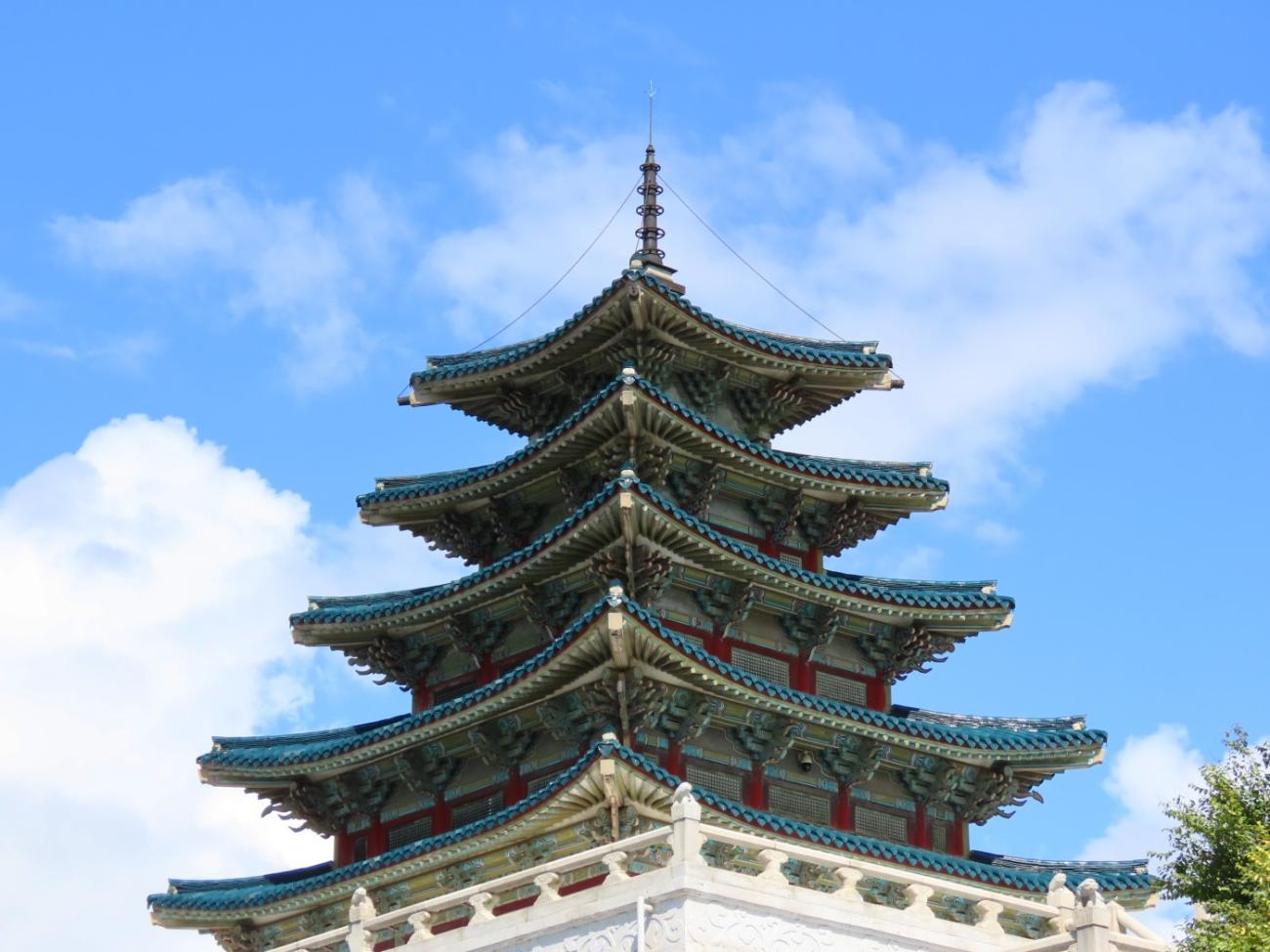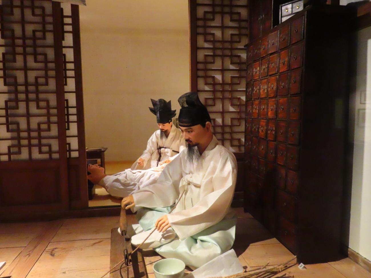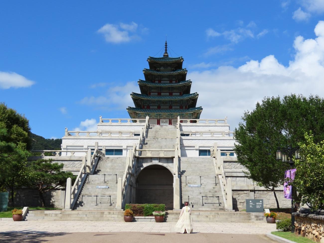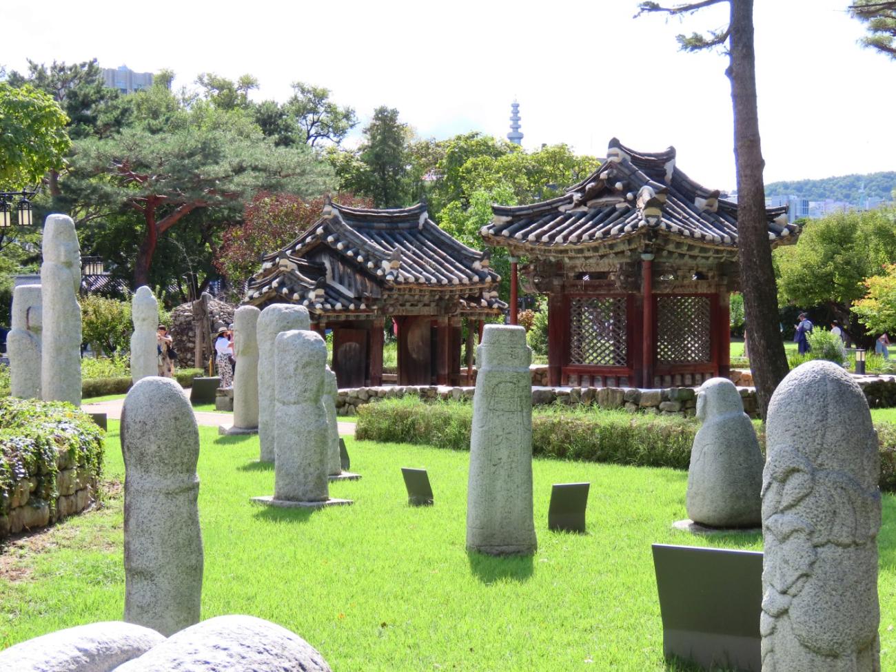Det Nationale Folkemuseum ligger også i området Bukchon, så der går vi over ved at gå nord om det store paladskompleks. Det er et fint museum med flere flotte ting, og især udendørsområdet med skulpturer og flotte bygninger, synes vi, er interessant.