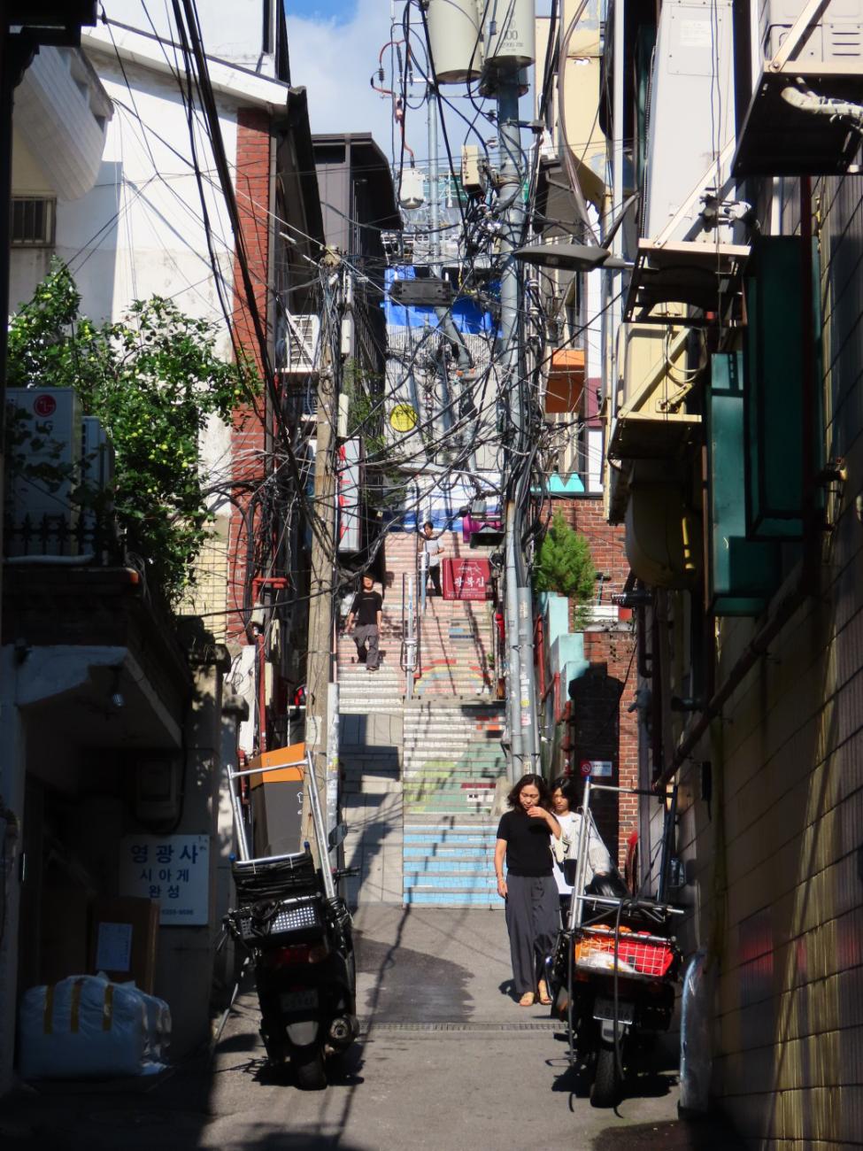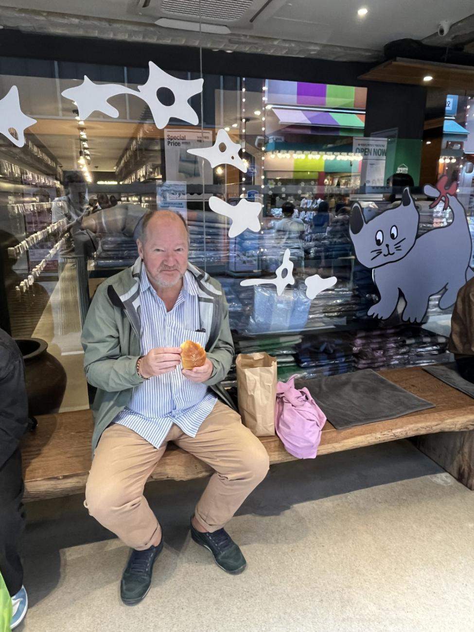 Øst for rådhuset ligger Lotte Department Store, som vi besøger en af de første dage i byen, og går man længere østpå, kommer man til området med gågader, som vi besøger to gange. Første gang er det frygtelig varmt, men anden gang er det noget mere behageligt, og vi hygger os med at besøge de mange K-pop-butikker, og det er også her, vi får smagt den koreanske specialitet “salt bread” første gang. Det er egentlig bare salte boller lavet af gærdej, men da de kommer direkte ud af ovnen, er de meget lækre.