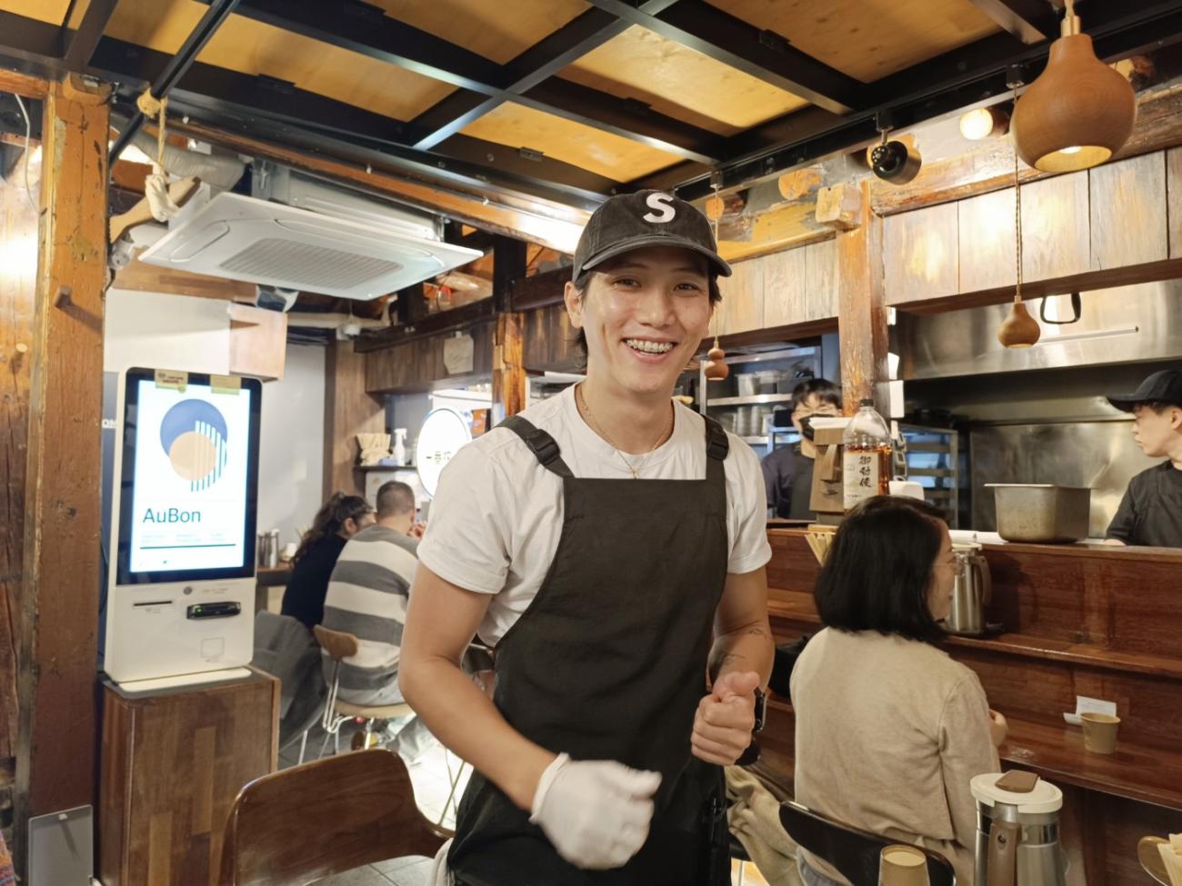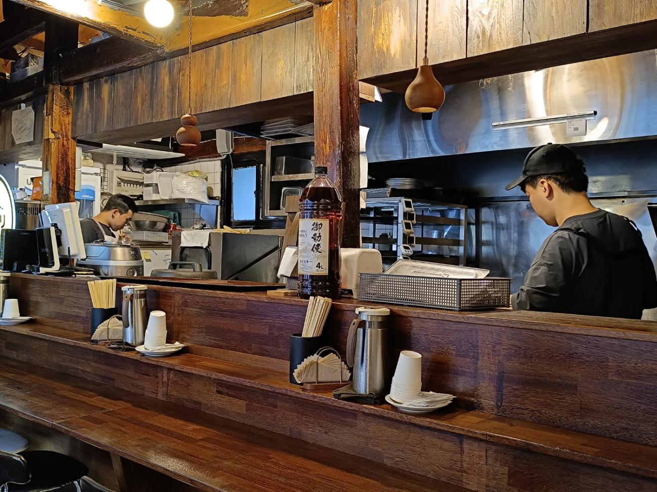 Vi bestiller og betaler maden i en automat, der står inden for døren, og der er kun få retter at vælge mellem. Tonkatsu er paneret svinekød, hvor man bruger en speciel tonkatsu-panering, og så serveres der altid ris, revet kål med sesamdressing og misosuppe til; både ris, kål og suppe kan man få ekstra af. Efter vi er blevet stamkunder, får vi indimellem lidt ekstra af det gode kød. Vi tager altid en cola til.