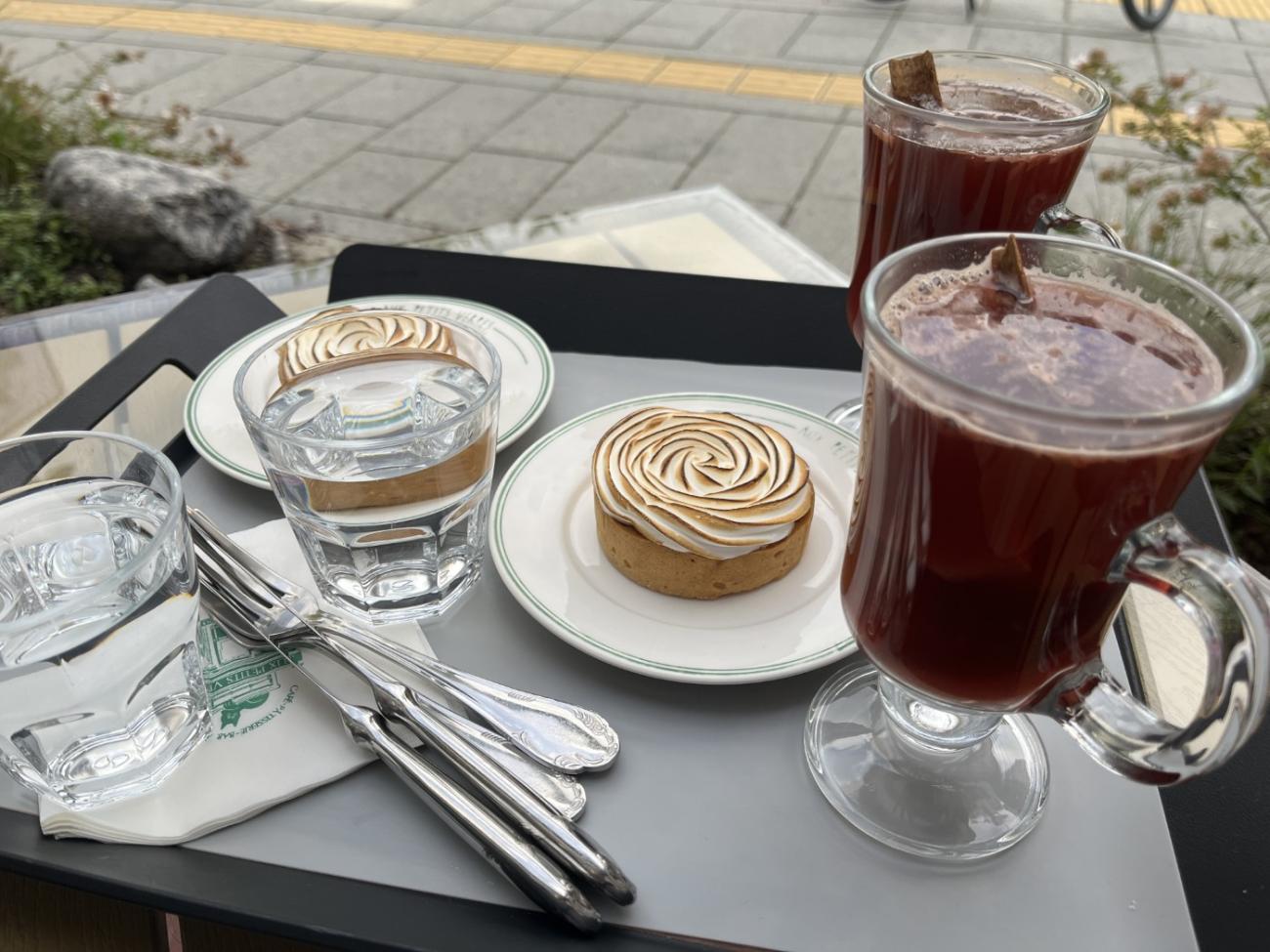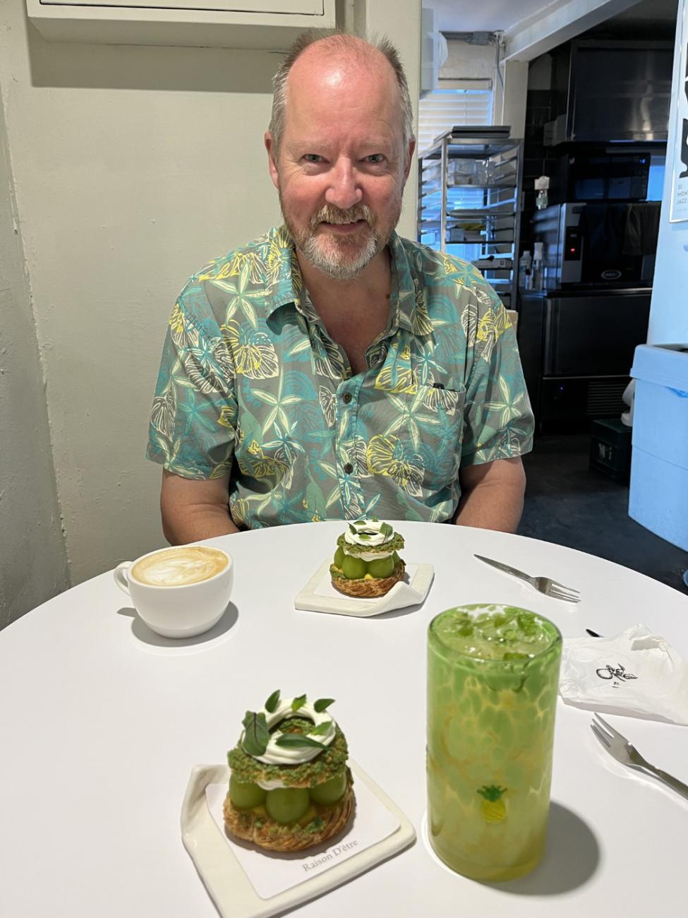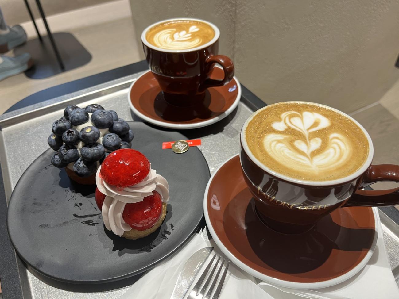 Aux Petites Verres ligger på Jahamun-ro, og her får vi både kaffe med Baileys og varm rødvin, og Midmé på den anden side af vejen har et par borde ude på fortovet. Tæt herpå ligger Crepe Boy, hvor vi får lækre vafler. Cafe Boan og Tailor Coffee ligger tæt på paladset, og sidstnævnte er et meget stort sted med fine kager, der åbner, mens vi bor her. Naeja & Co og Coffee Tour ligger begge på samme vej som ølbaren Mollim.
