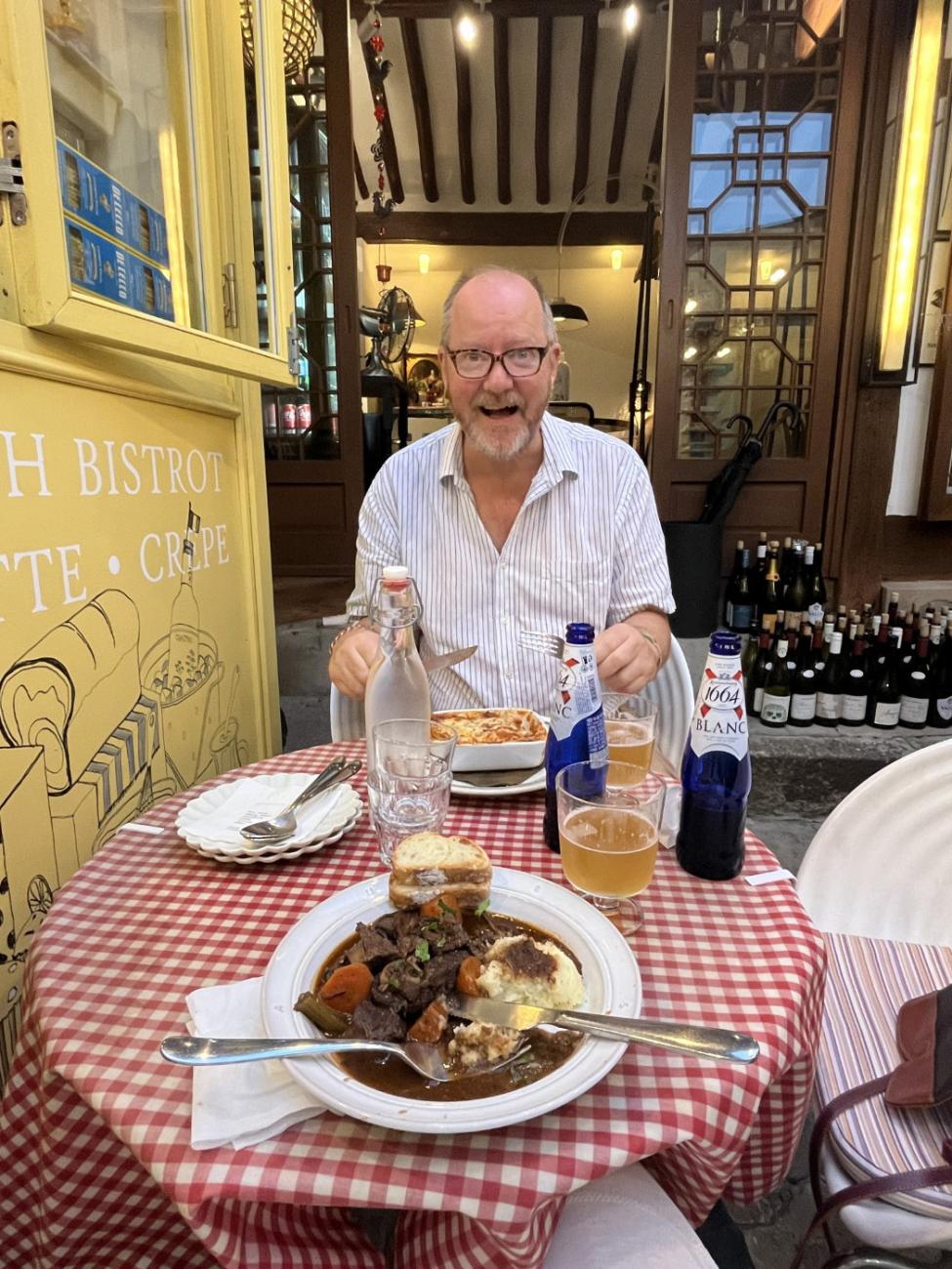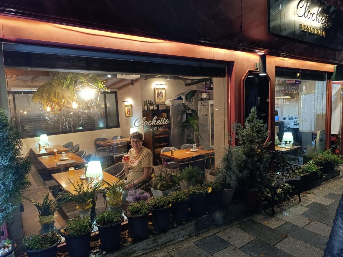 Hos San Felice, der ligger på en sidevej til vores vej, hvis man drejer til venstre, når vi går ud ad døren, får vi altid en fin betjening, og tjeneren er god til engelsk. Vi deler som regel en caprese, tomater med mozzarella, til forret og derefter hver en portion pasta med hvid ragu og trøffel. Maden er virkelig lækker, men portionerne er lidt for små. Lige bag ved San Felice ligger Kkochpigong, og det er også italiensk mad. Vi kommer et par gange, og den sidste gang skal ejeren klare to selskaber og os, både som tjener og kok, så han har travlt. Seochon French ligger i samme område, og her kan man kun få en fast menu. Maden er fin, men menuen skifter ikke, så vi kommer kun én gang.