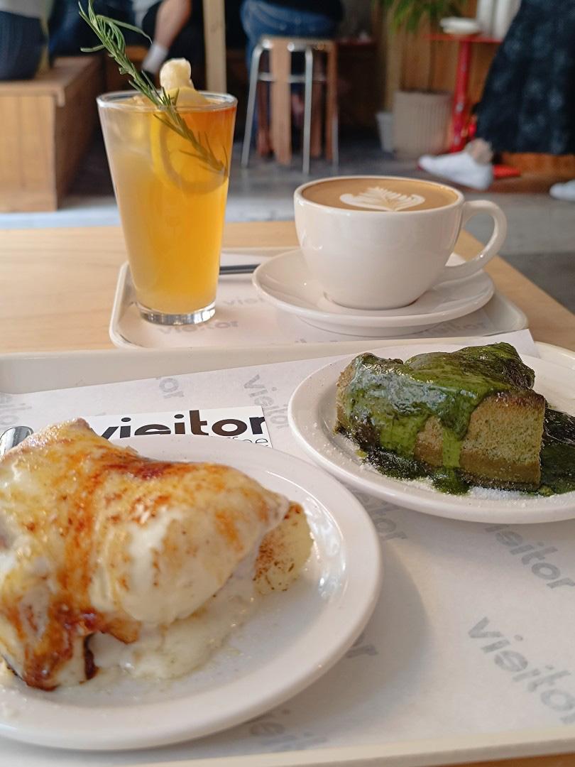Vi spiser morgenmad på Sage Finch den første morgen, men spiser ellers hjemme, og her er ikke åbent om eftermiddagen. SCOFF Bakehouse besøger vi flere gange, og den er meget populær. Alle kagerne står fremme, så man vælger selv; her er hyggeligt, men kagerne er egentlig lige store nok. Dae-o Bookstore er en sjov lille café i en boghandel, og hos A Little Kettle får vi te og scones. Raison D’etre har nogle meget fine og dyre kager, og hos New Line kan man sidde i døren, efter temperaturen er blevet lidt mere behagelig. Både Apostrophe, BNHR Coffee og Ma Non Troppo er lidt kedelige, mens Spectre ligger i en hyggelig smøge. Visitor ligger på samme vej som San Felice, og den besøger vi en enkelt gang. Archivist ligger lidt længere væk og er hyggelig, men anden gang vi kommer, er der venteliste for at komme ind. Edition Denmark besøger vi ikke, men der kan man få te fra Perch’s.