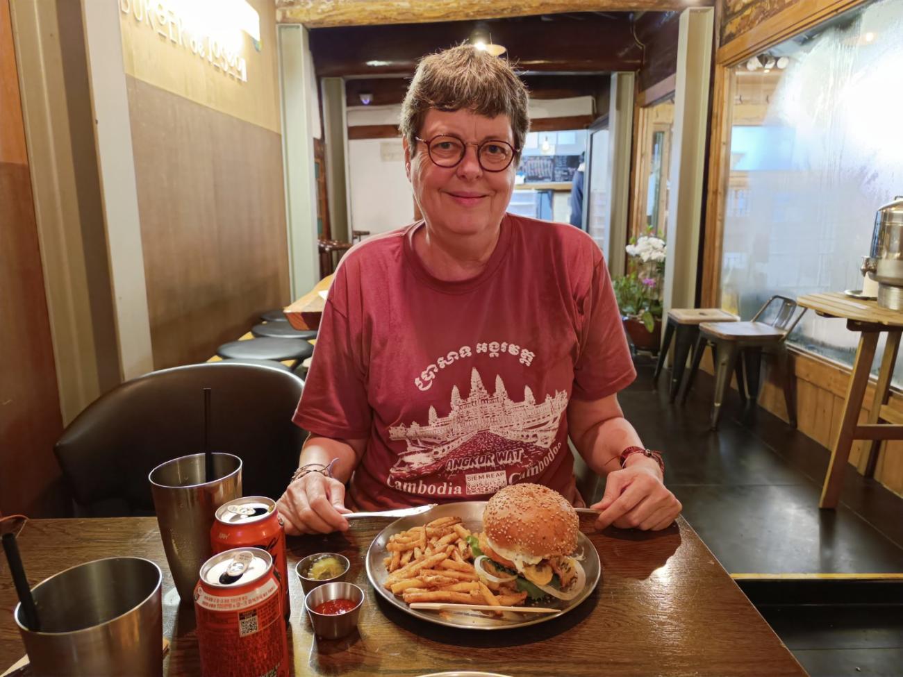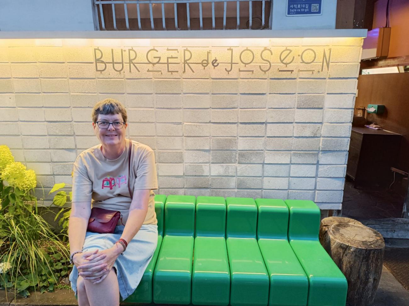 Ud over vores fire stamsteder kommer vi oftest på Clochette, der ligger på vores vej, meget tæt på lejligheden. Vi får som regel deres lasagne, da de andre retter ikke er så spændende, og vi sidder her flere gange helt alene, men de er søde, og det er dejligt nemt, især hvis det regner. Burger de Joseon ligger ved siden af ølbaren Mollim, og de har rigtig gode burgere. Vi tager altid den med avocado og bacon, og Hanne tilføjer en hash brown. Her kommer vi en del.