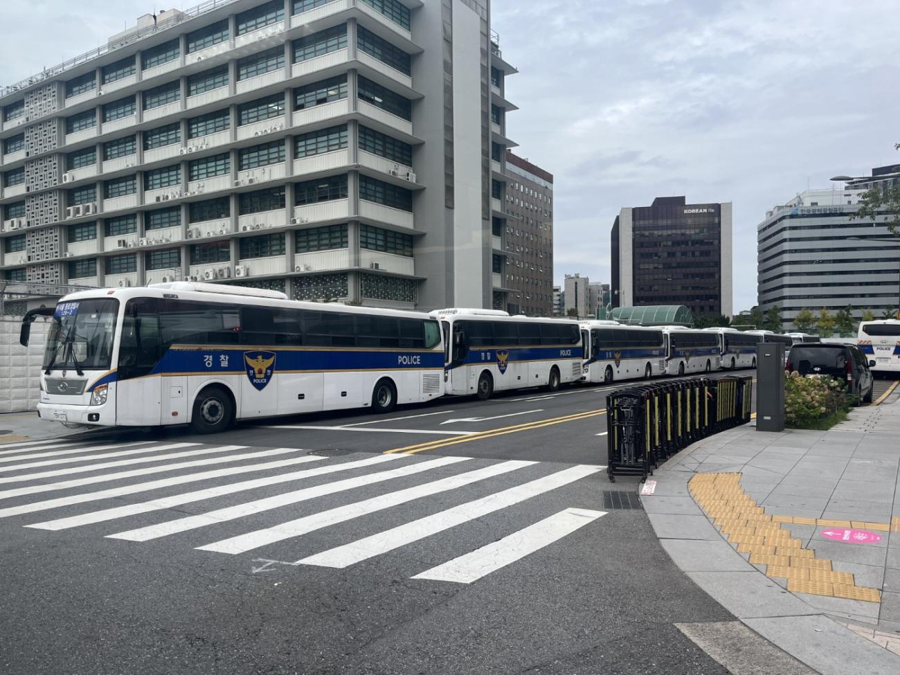 I området syd for de to paladser tæt på vores lejlighed ligger der mange regeringsbygninger, og det er også her, den amerikanske ambassade ligger. Vi tror, det er derfor, at der altid er helt utrolig mange politibusser langs vejene her. Vi ser indtil flere demonstrationer i dette område, men de virker nu fredelige nok.