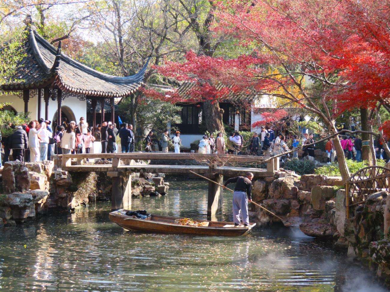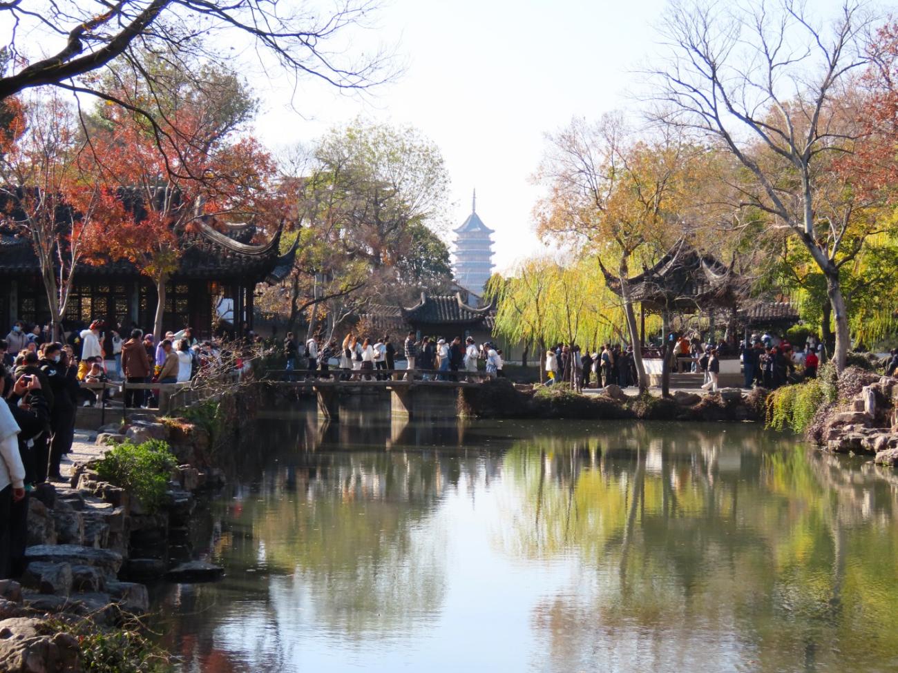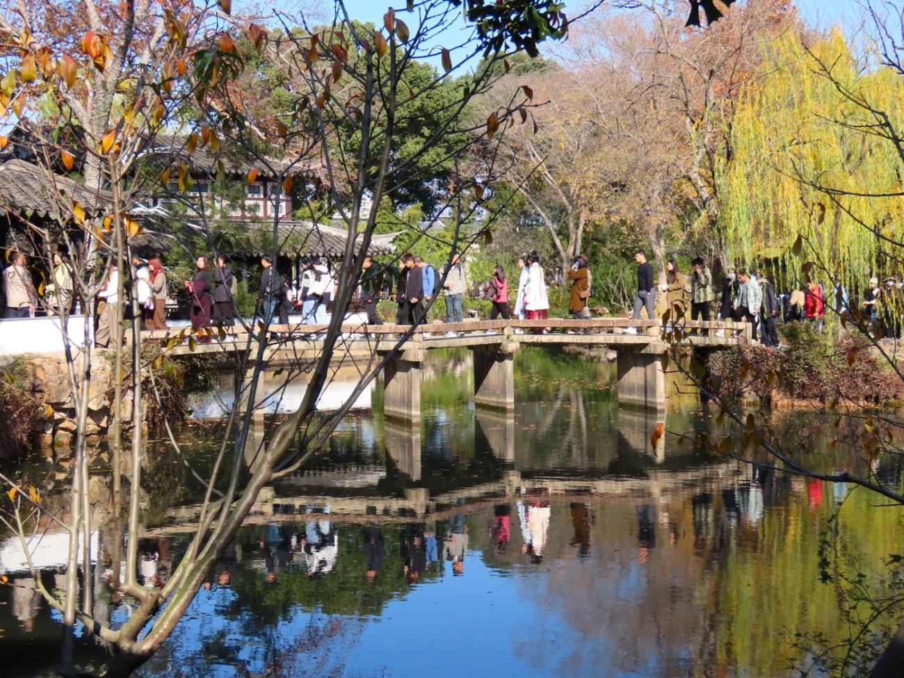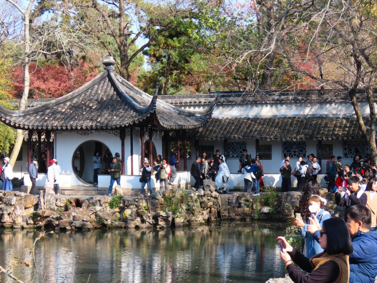 Suzhou er kendt for sine fine klassiske haver, som alle er på UNESCOs Verdensarvsliste, og en af de mest kendte er The Humble Administrator's Garden fra 1509; den besøger vi på vores første lørdag i byen, da vi har det fineste solskinsvejr.