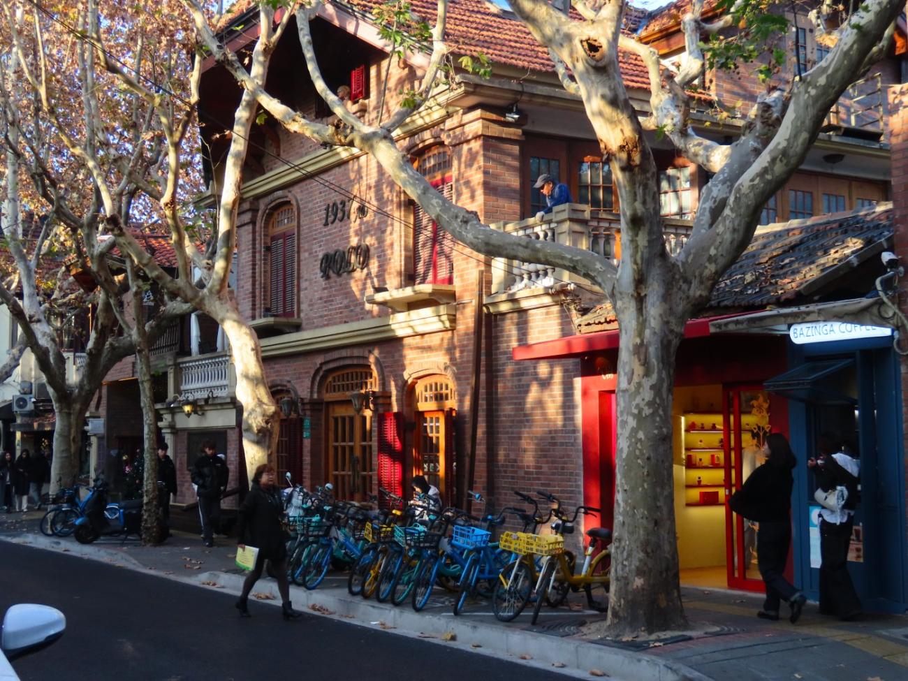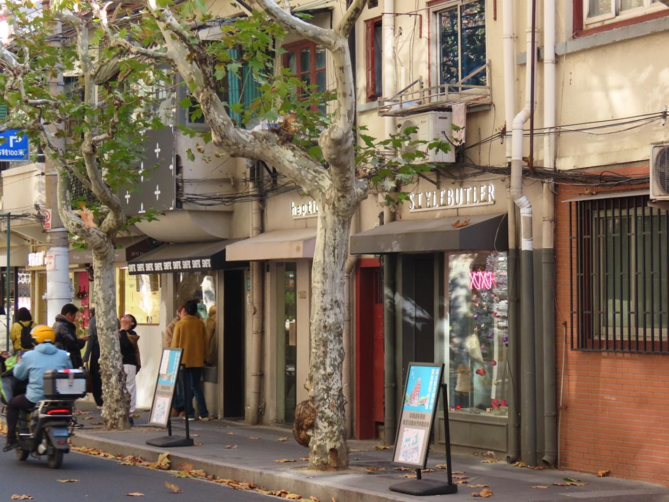 Efter besøg i Yuyuan-haven tager vi metroen ud til det område, der hedder Den Franske Koncession; et område, som Frankrig administrerede fra 1849 til 1943, efter Kina tabte Den Første Opiumskrig. I dag er det et af Shanghais mere mondæne boligområder med mange restauranter og butikker, hvor man har bevaret den europæiske byggestil, og hvor der er mange lidt smallere gader med flotte platantræer.