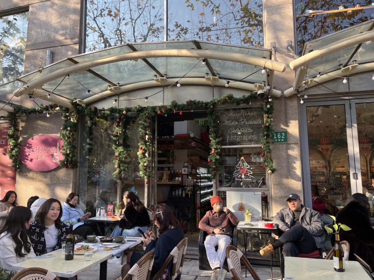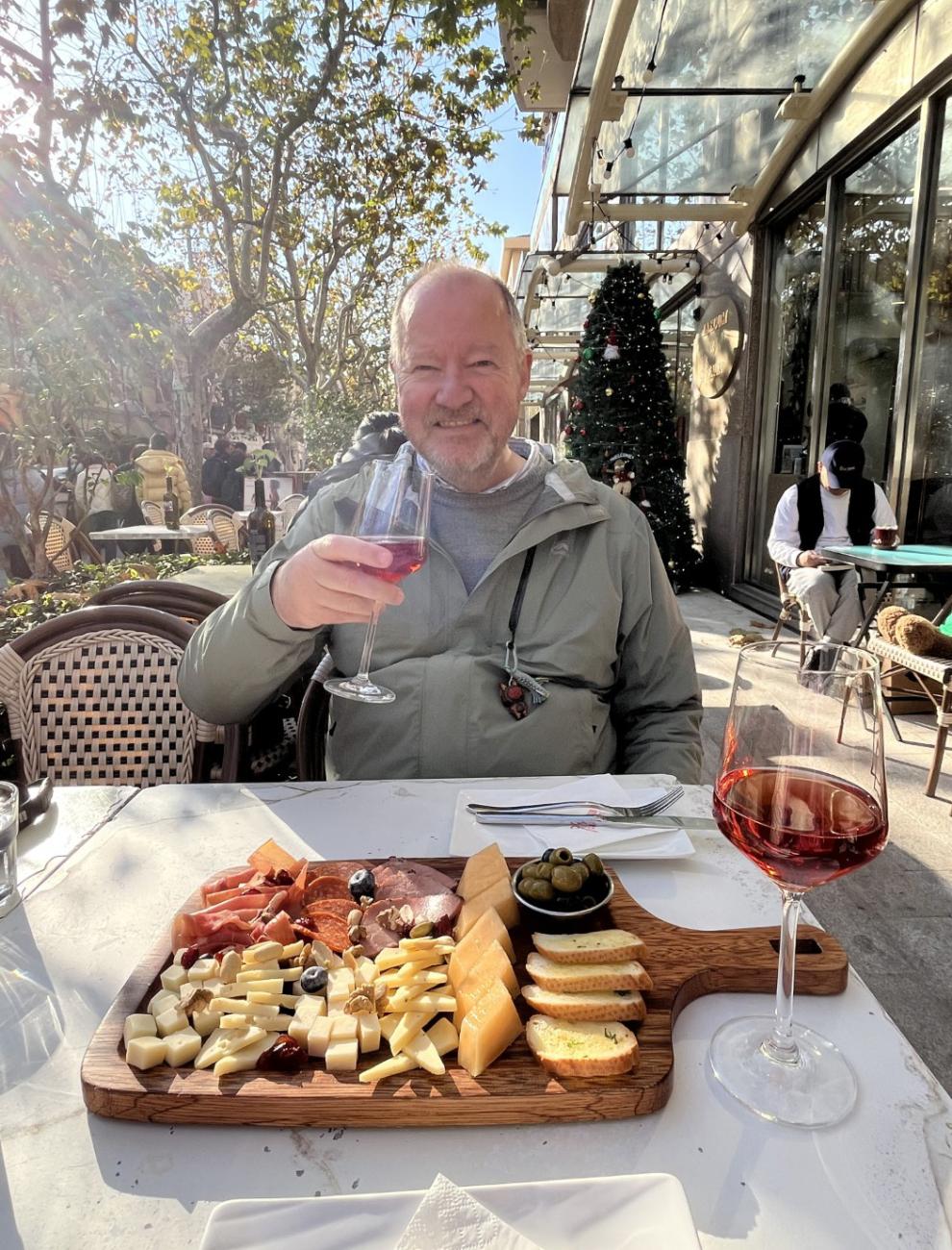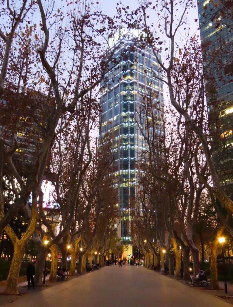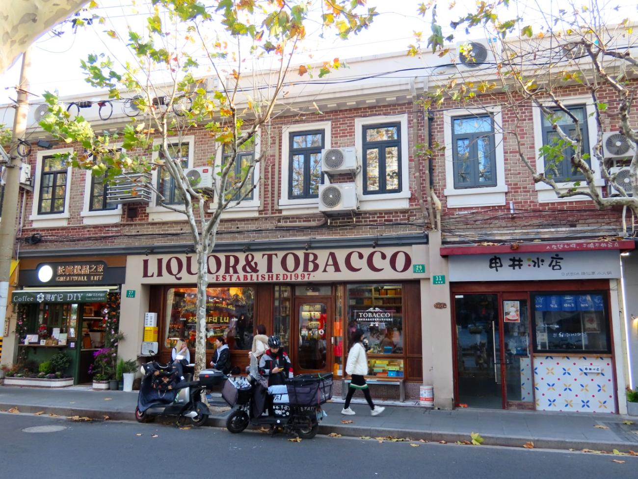 Vi starter med at gå hen til den kendte Wukang Building, hvor folk nærmest står i kø for at tage billeder. Den er nu ikke noget særligt, så vi går hurtigt videre. Vi finder en hyggelig restaurant, Just Grapes, hvor vi kan sidde ude i solen og nyde et lækkert charcuteri- og ostebræt og et par glas rosévin, hvorefter vi går videre i de hyggelige gader; man fornemmer slet ikke, at man er i en kæmpe by. Vi har fundet restauranten World of Beer på Google, hvor der skulle være et pænt udvalg af øl på hane, så der går vi hen sidst på eftermiddagen, men stedet har vist skiftet ejer, udvalget er ikke særlig stort, og de ved ikke ret meget om øl, så det bliver bare til en enkelt.