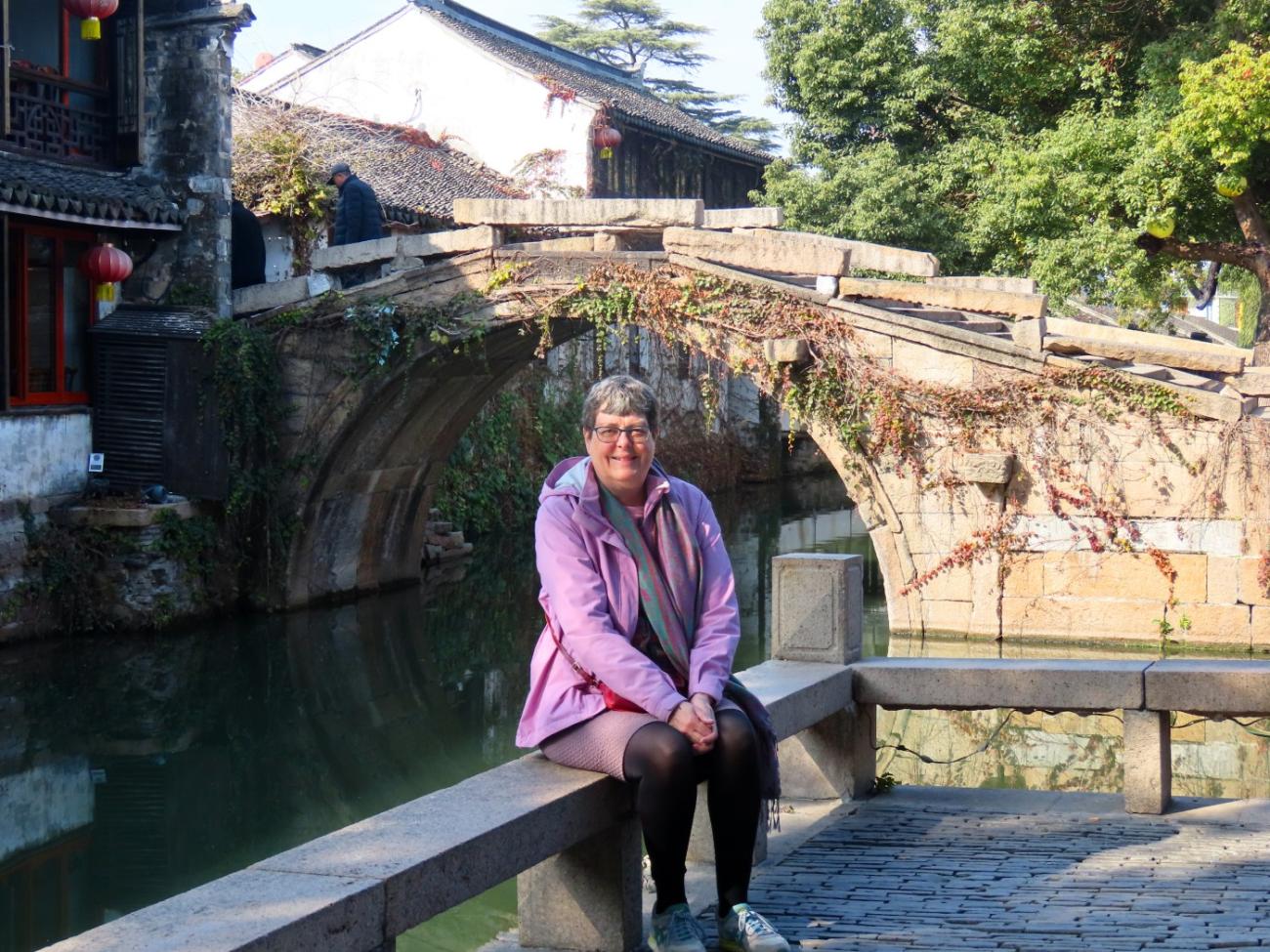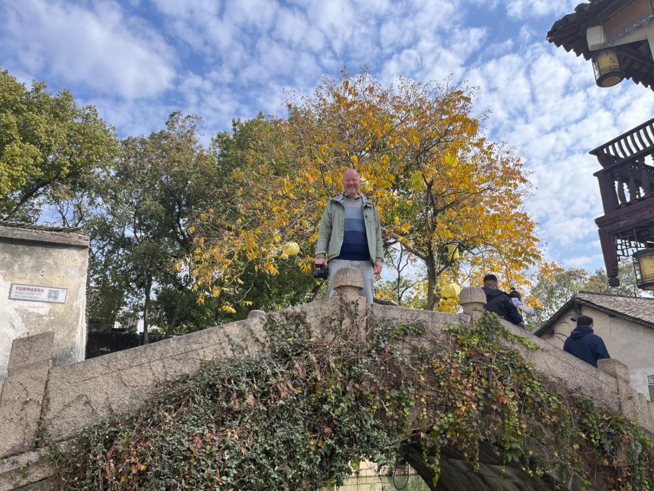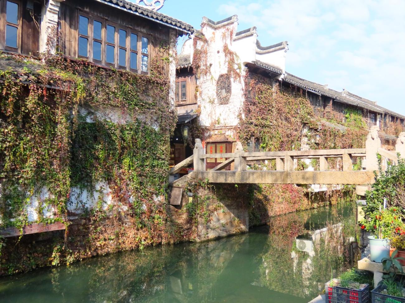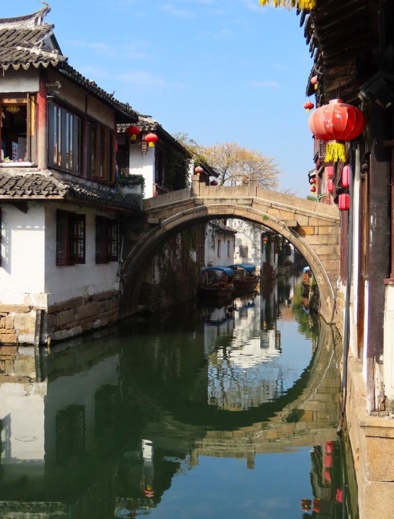 Tirsdag den 16. december beslutter vi os for at besøge endnu en af områdets smukke vandbyer, og denne gang tager vi en DiDi til Zhouzhuang, der kigger knap 50 km sydøst for Suzhou. Zhouzhuang kalder sig Kinas vandby nr. 1, og vi bliver bestemt ikke skuffede. Vi har det flotteste vejr i denne smukke by med smalle gader, hyggelige kanaler og små gamle broer, og vi nyder, at hele den gamle del af byen er helt lukket for trafik, også scootere.