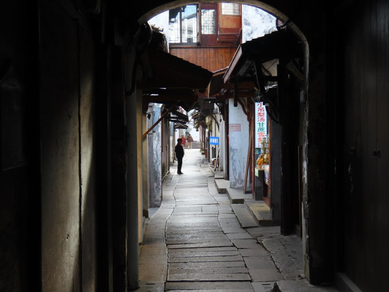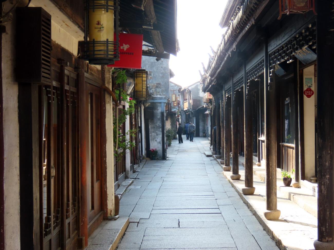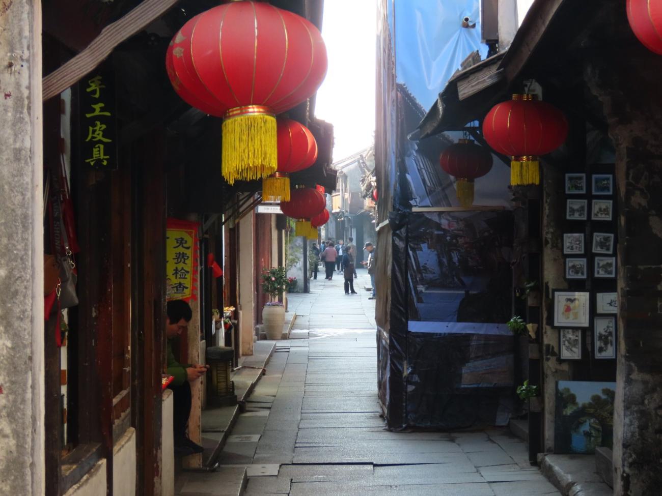 Vi går rundt i de hyggelige gader i godt tre timer og får også købt lidt friskbagte kinesiske boller og et par souvenirs. Vi køber et lille broderet billede af byen, og selvom vi godt ved, at det er masseproduceret, undrer vi os alligevel over, at det kun koster, hvad der svarer til 7 kr. Vi køber også to små glasfigurer med billeder af det kinesiske år, vi er født i; Jens Peter er født i Dragens år og Hanne i Kaninens år. Inden vi tager en DiDi hjem, får vi lidt varm blommevin, som er meget populært i dette område af Kina. Vi er enige om, at vi har haft endnu en rigtig hyggelig dag.