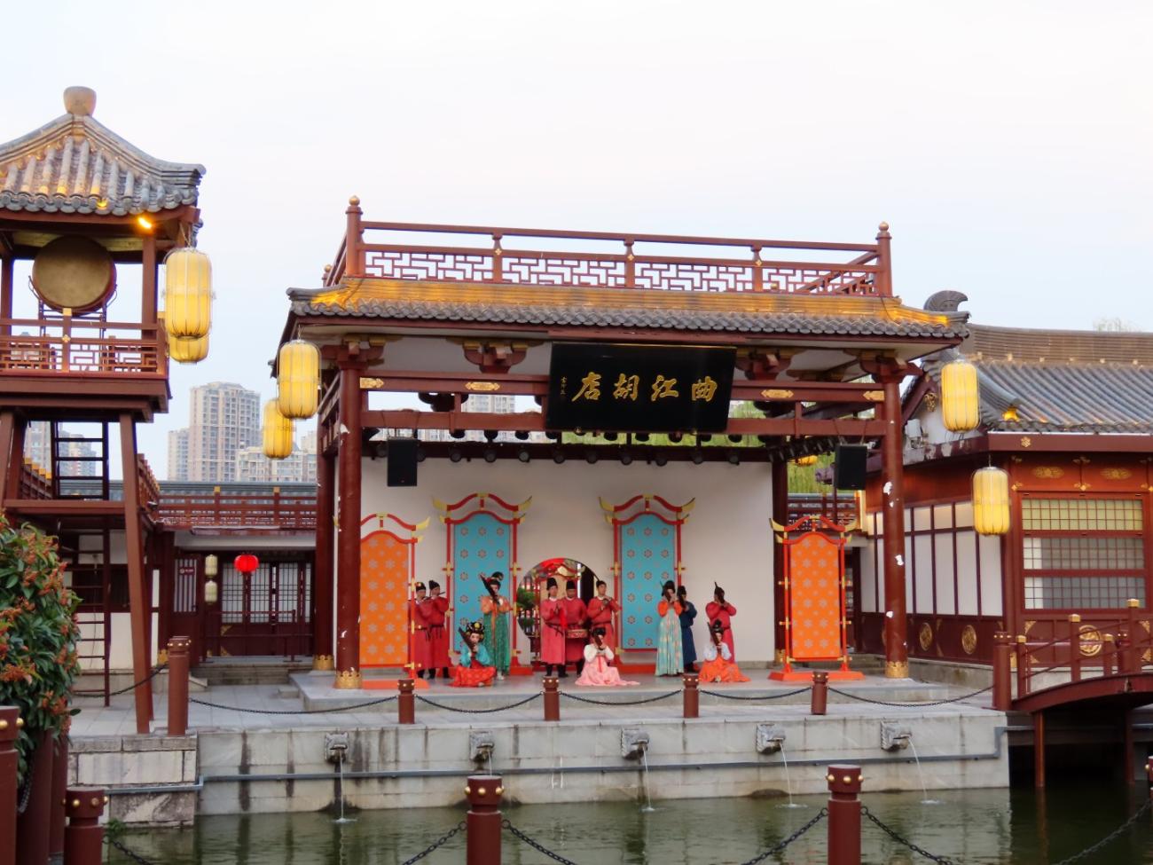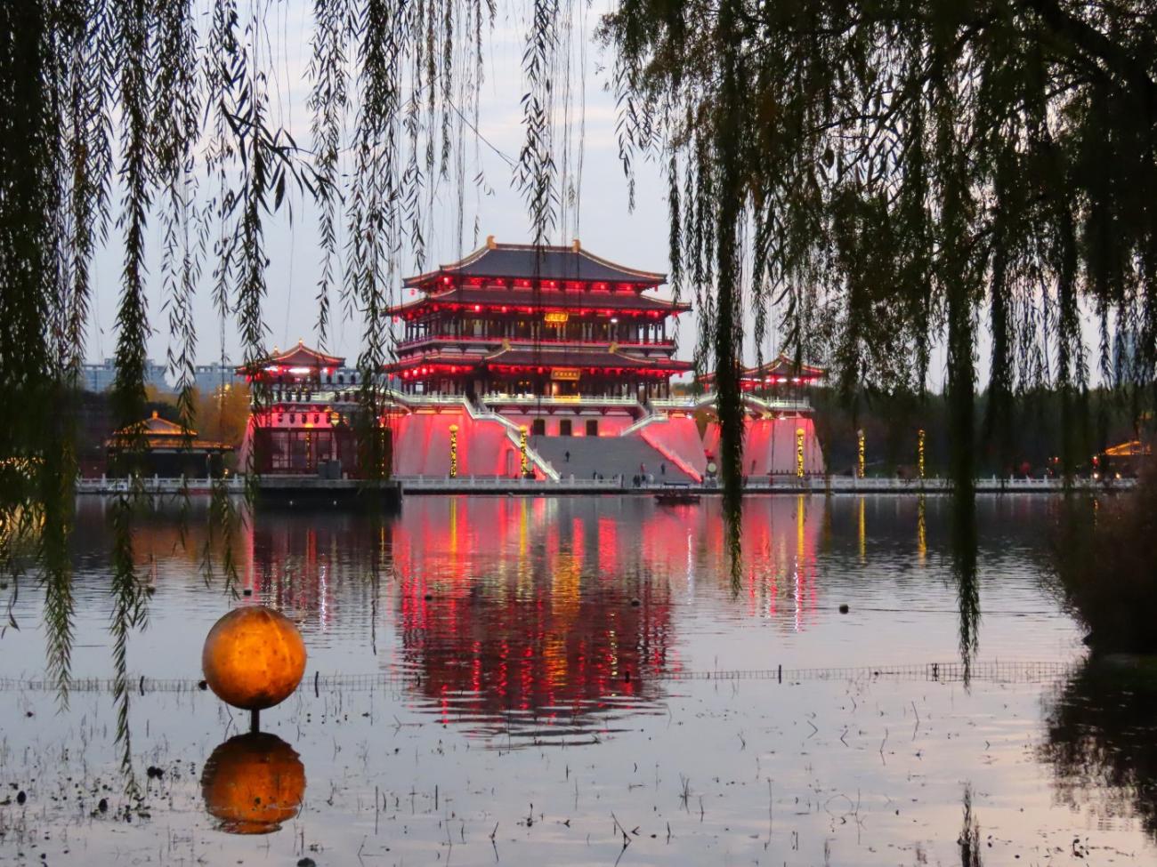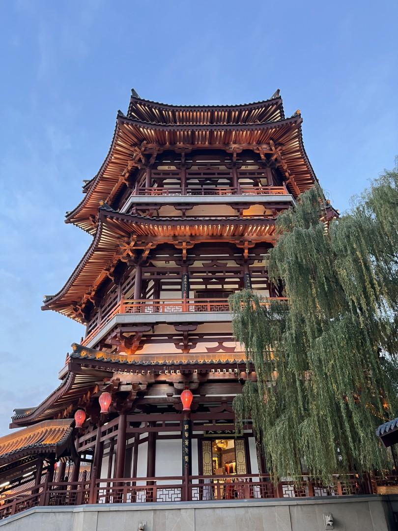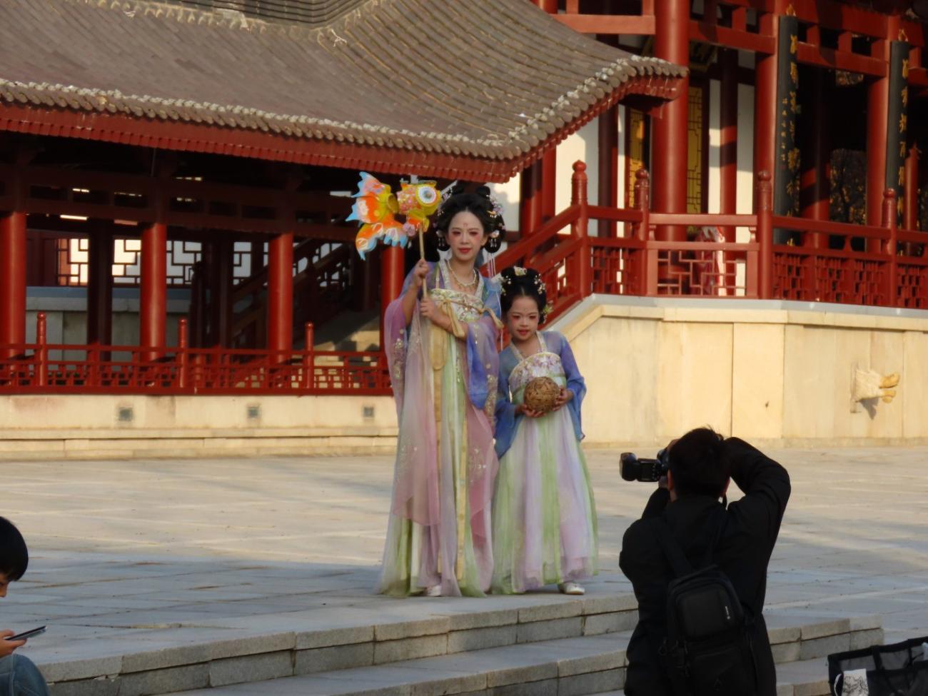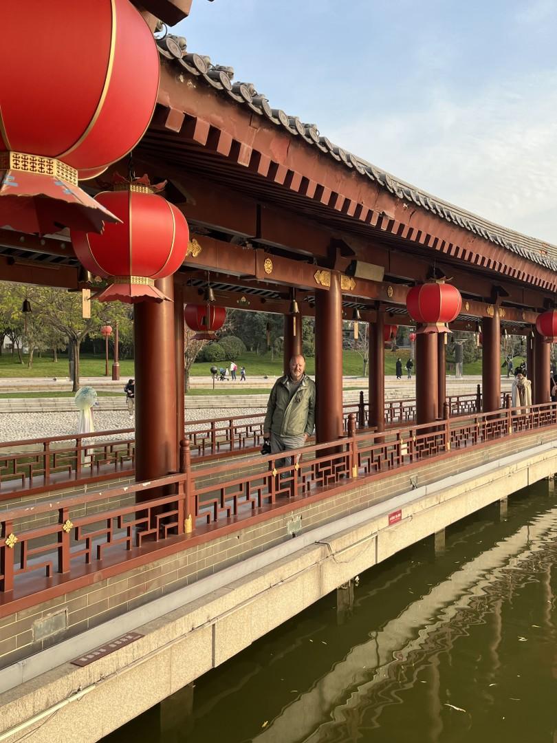 Vi tager endnu en DiDi til et område uden for bymuren, idet vi besøger den store og meget flotte park Tang Paradise, der ligger godt 6 km syd for vores hotel. Jens Peter har læst om den og set mange flotte billeder, og vi har indtryk af, at det er en offentlig park. Det viser sig nu, at vi skal betale for at komme ind, men det gør ikke noget, for det er heldigvis alle pengene værd.