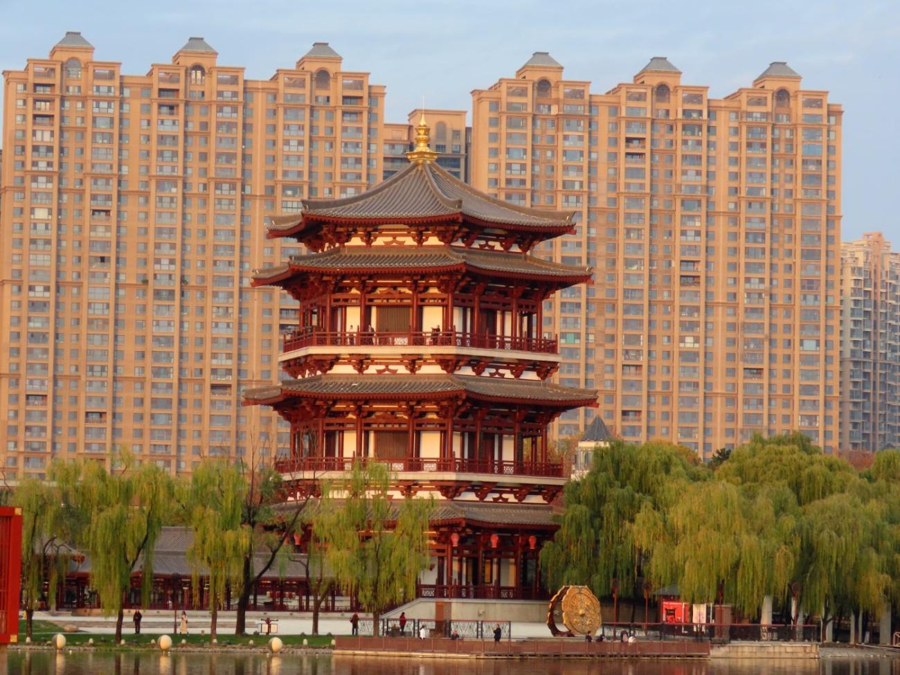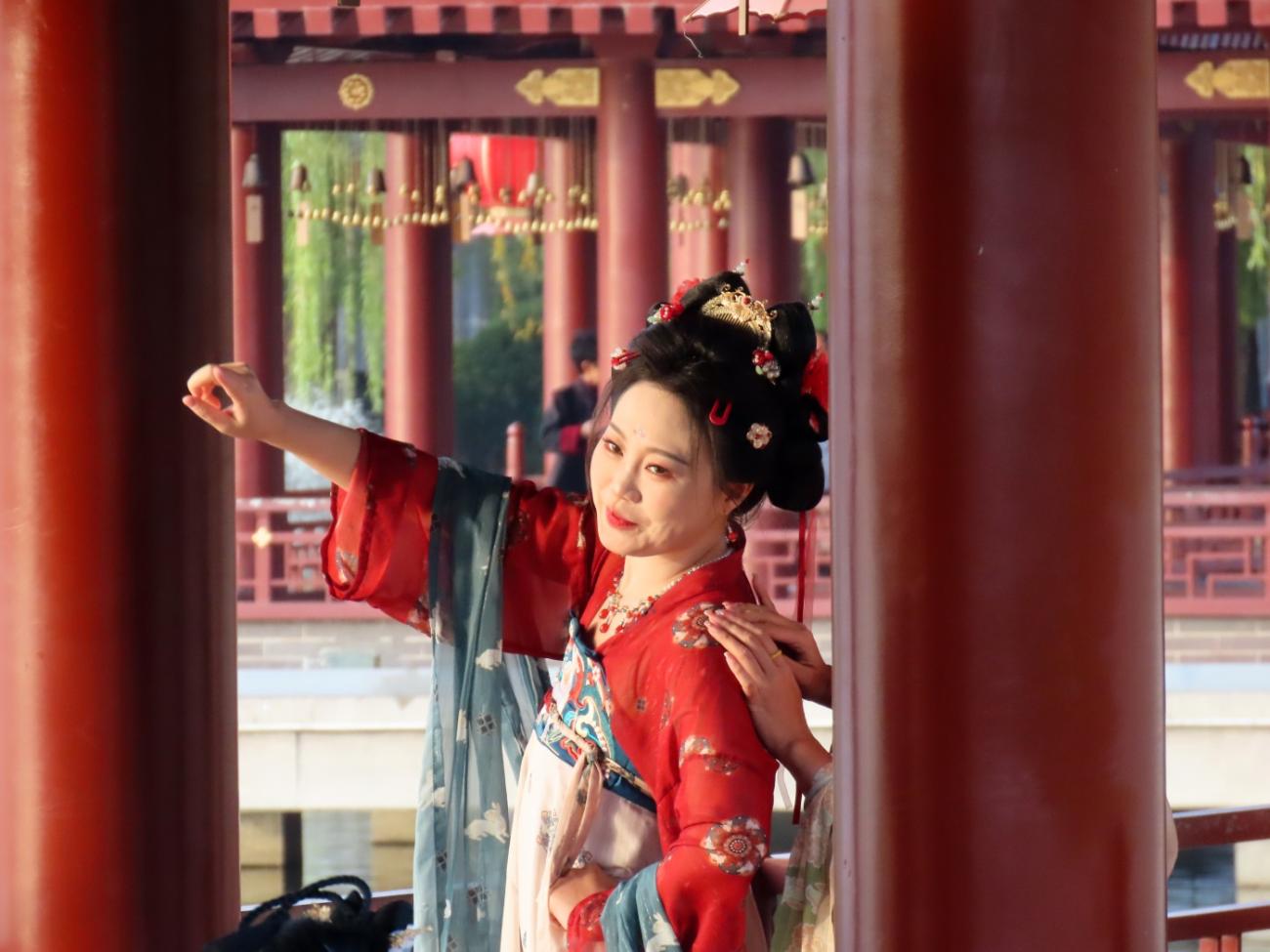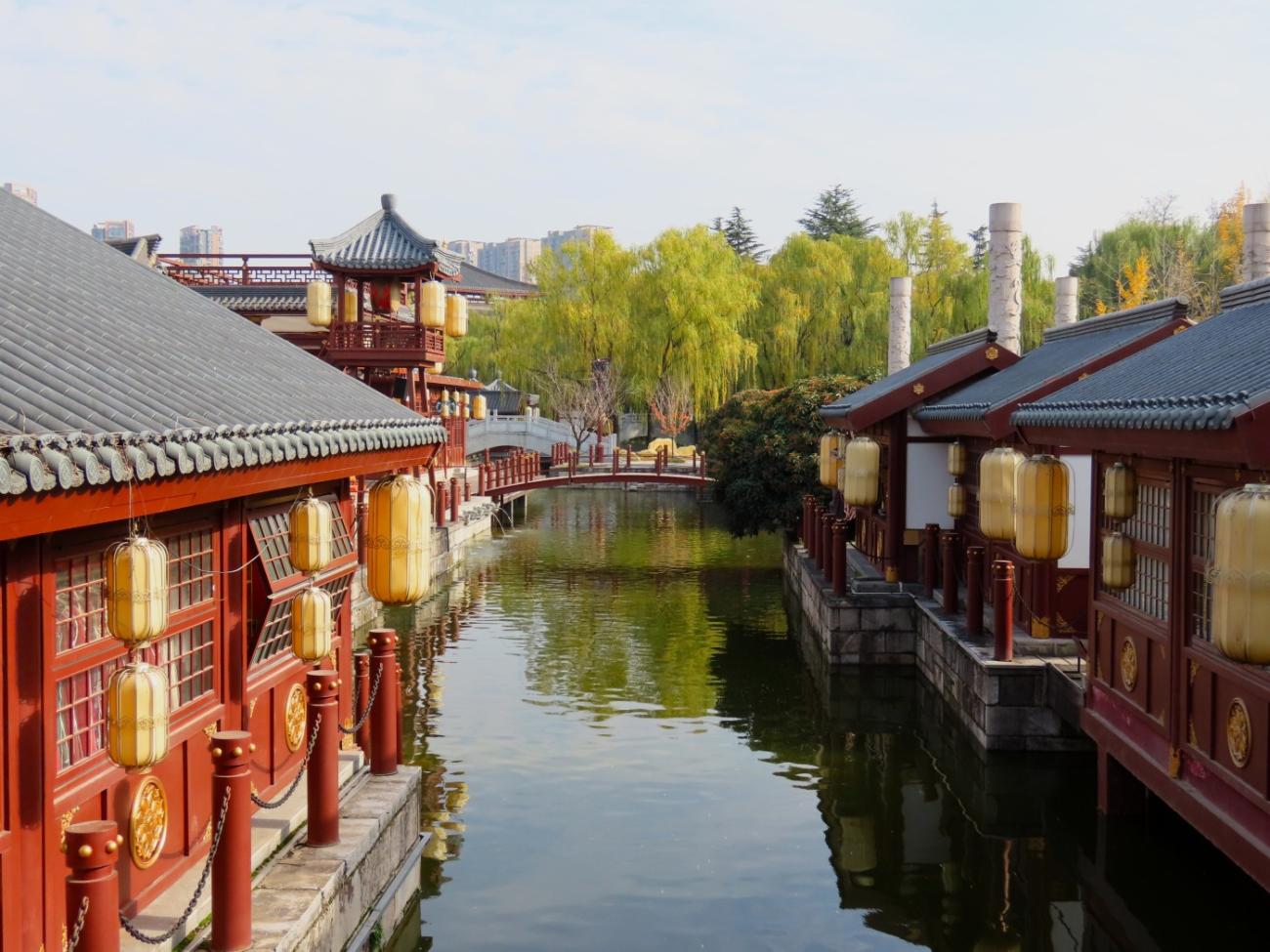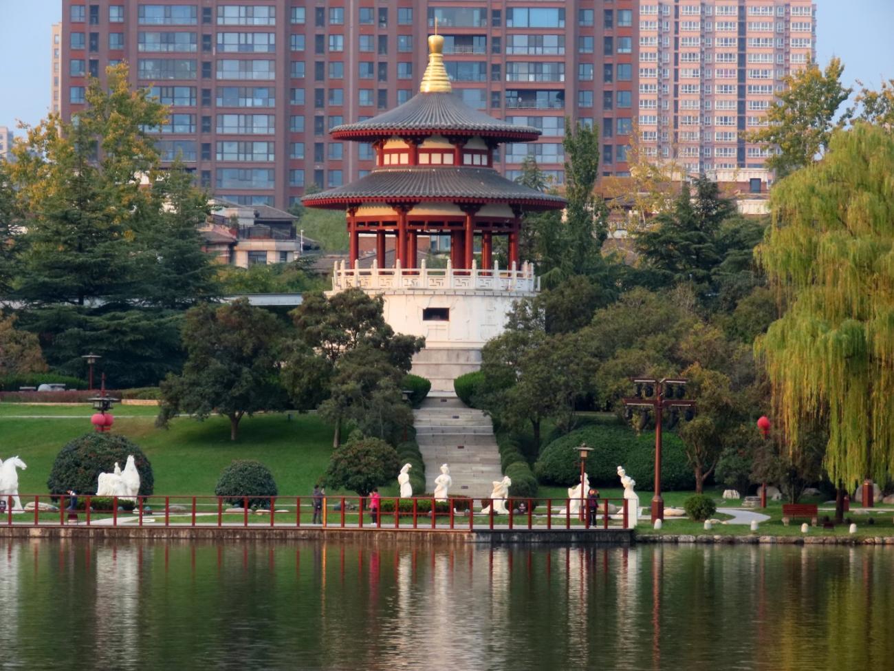 Vi tager endnu en DiDi til et område uden for bymuren, idet vi besøger den store og meget flotte park Tang Paradise, der ligger godt 6 km syd for vores hotel. Jens Peter har læst om den og set mange flotte billeder, og vi har indtryk af, at det er en offentlig park. Det viser sig nu, at vi skal betale for at komme ind, men det gør ikke noget, for det er heldigvis alle pengene værd.