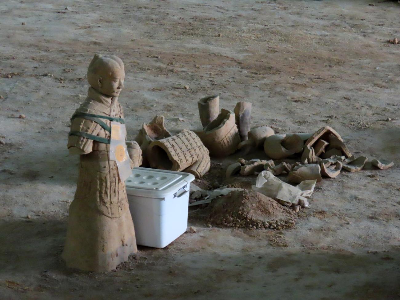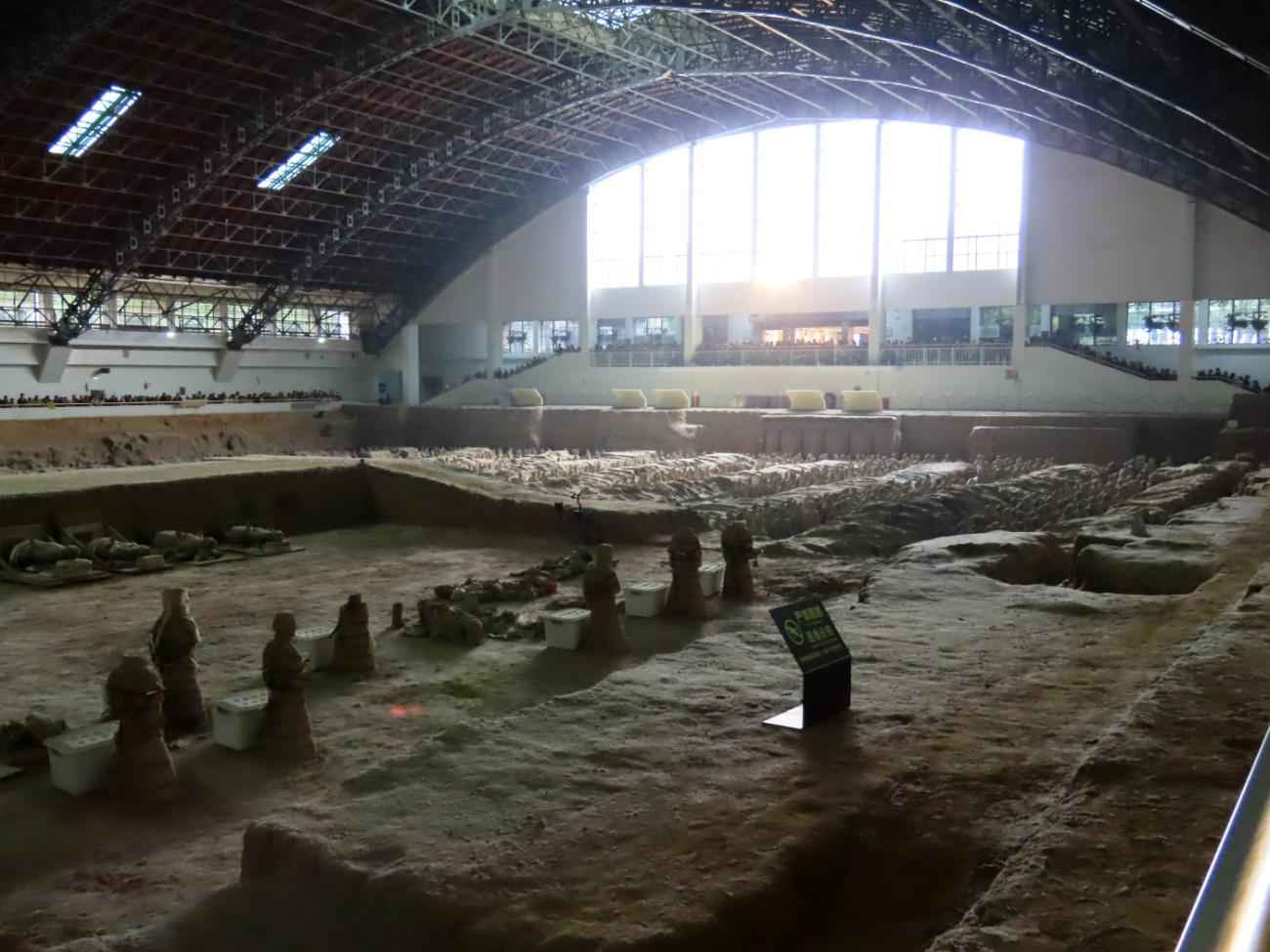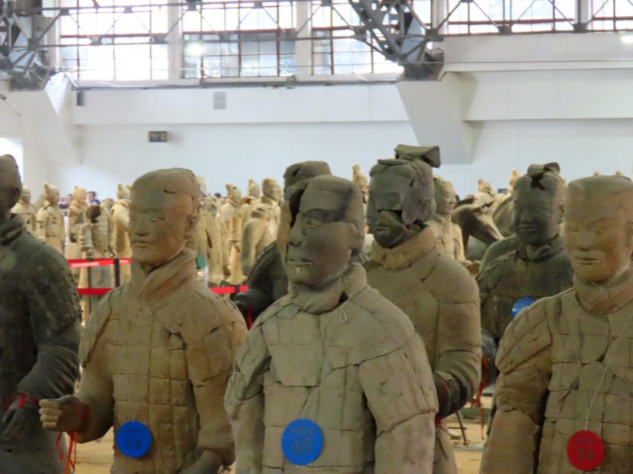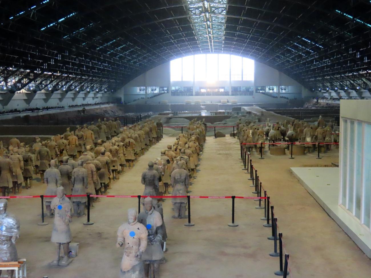 Der er tre store haller, hvor man kan se de fantastiske udgravninger fra en gangbro, der går hele vejen rundt. Vi starter med hal nr. 1, der er den største, hvorefter vi besøger hal 3 og hal 2. Der er en del mennesker, især i den største hal, men vi kan nu godt komme til at tage billeder, så det er ikke så slemt, som det kunne have været. Det er meget imponerende og en stor oplevelse. Der bliver i øvrigt stadig arbejdet med både restaurering og udgravning af de mange soldater. Efter at have været hallerne igennem besøger vi souvenirbutikken, hvor vi køber en figur og et par magneter, og vi sætter os på en bænk og drikker en sodavand. Derefter besøger vi et større museum ved siden af hallerne, hvor man kan se nogle af de udgravede soldater tættere på.