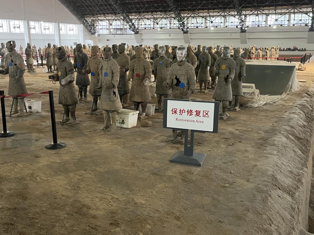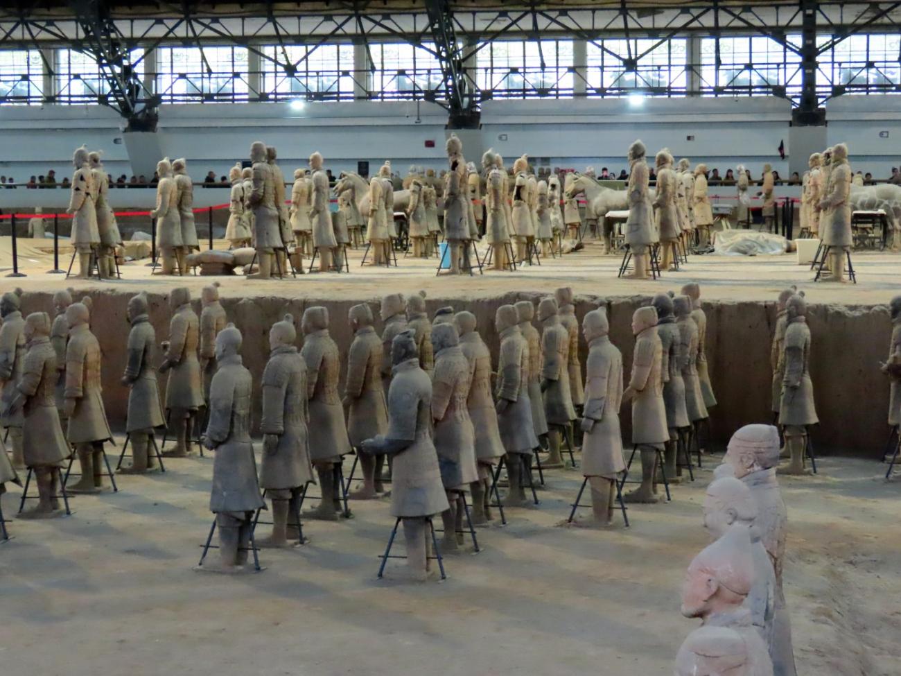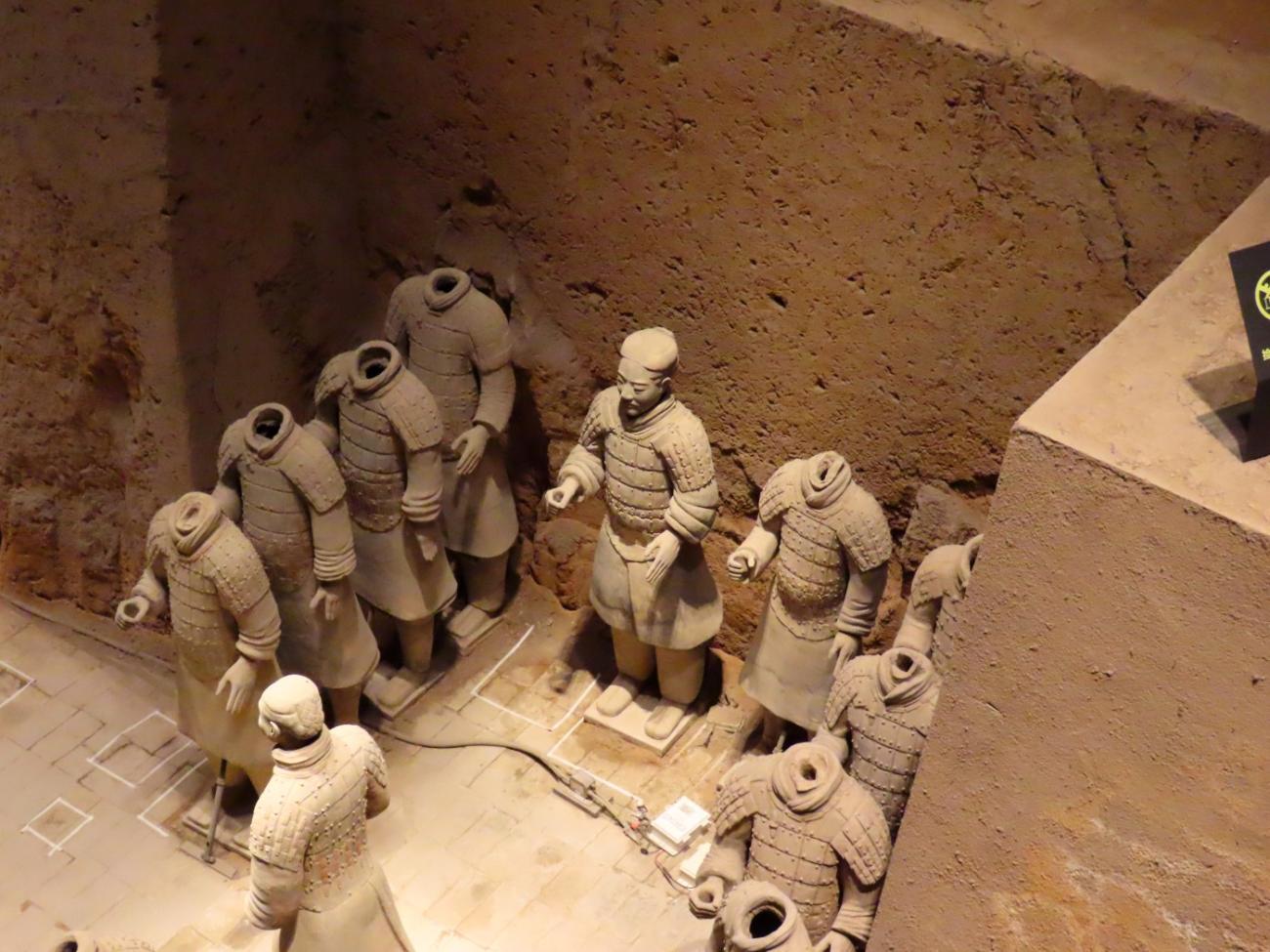 Der er tre store haller, hvor man kan se de fantastiske udgravninger fra en gangbro, der går hele vejen rundt. Vi starter med hal nr. 1, der er den største, hvorefter vi besøger hal 3 og hal 2. Der er en del mennesker, især i den største hal, men vi kan nu godt komme til at tage billeder, så det er ikke så slemt, som det kunne have været. Det er meget imponerende og en stor oplevelse. Der bliver i øvrigt stadig arbejdet med både restaurering og udgravning af de mange soldater. Efter at have været hallerne igennem besøger vi souvenirbutikken, hvor vi køber en figur og et par magneter, og vi sætter os på en bænk og drikker en sodavand. Derefter besøger vi et større museum ved siden af hallerne, hvor man kan se nogle af de udgravede soldater tættere på.