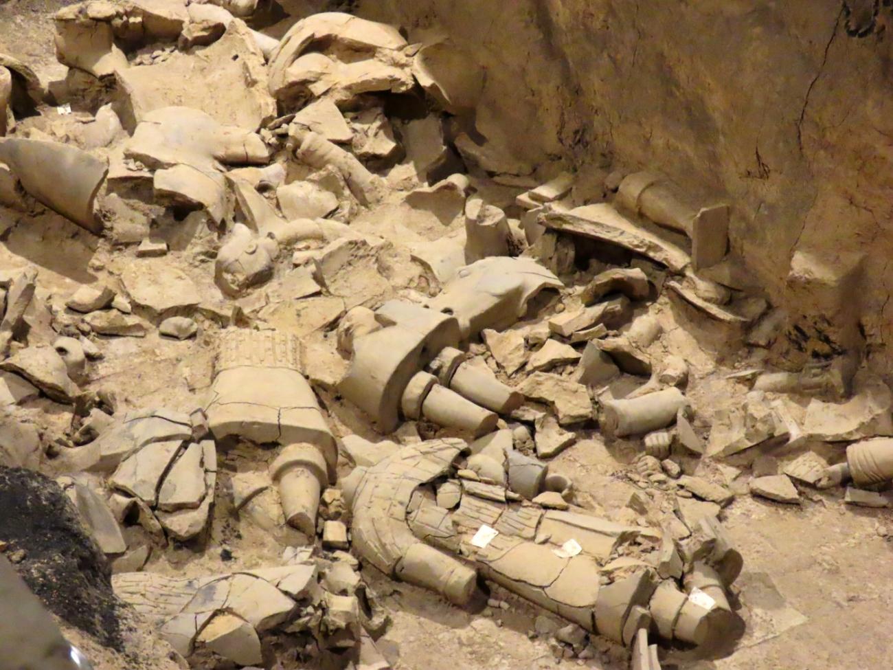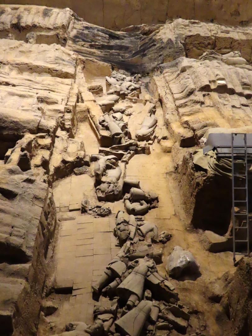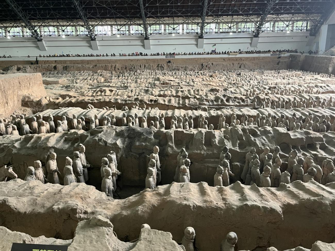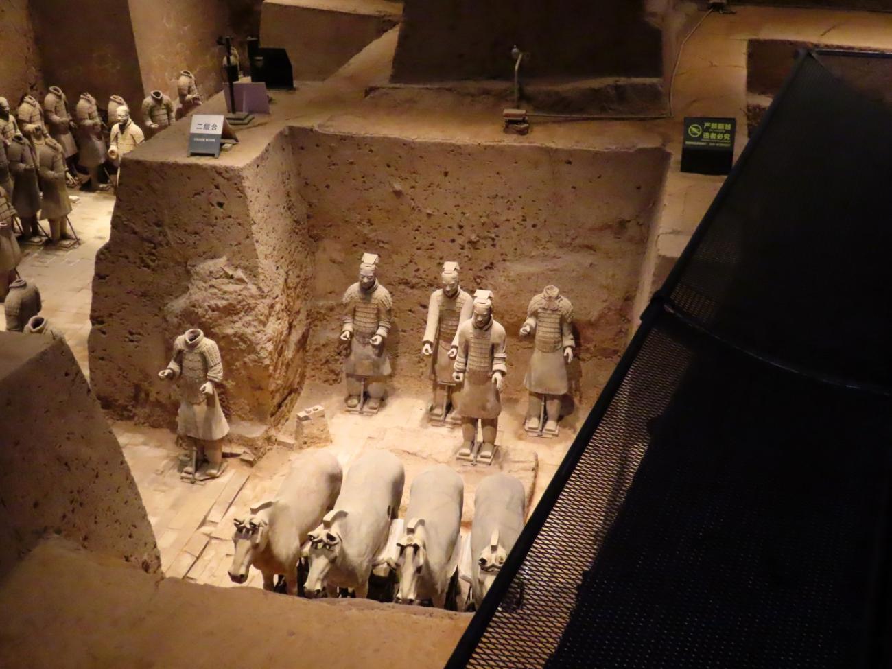 Der er tre store haller, hvor man kan se de fantastiske udgravninger fra en gangbro, der går hele vejen rundt. Vi starter med hal nr. 1, der er den største, hvorefter vi besøger hal 3 og hal 2. Der er en del mennesker, især i den største hal, men vi kan nu godt komme til at tage billeder, så det er ikke så slemt, som det kunne have været. Det er meget imponerende og en stor oplevelse. Der bliver i øvrigt stadig arbejdet med både restaurering og udgravning af de mange soldater. Efter at have været hallerne igennem besøger vi souvenirbutikken, hvor vi køber en figur og et par magneter, og vi sætter os på en bænk og drikker en sodavand. Derefter besøger vi et større museum ved siden af hallerne, hvor man kan se nogle af de udgravede soldater tættere på.