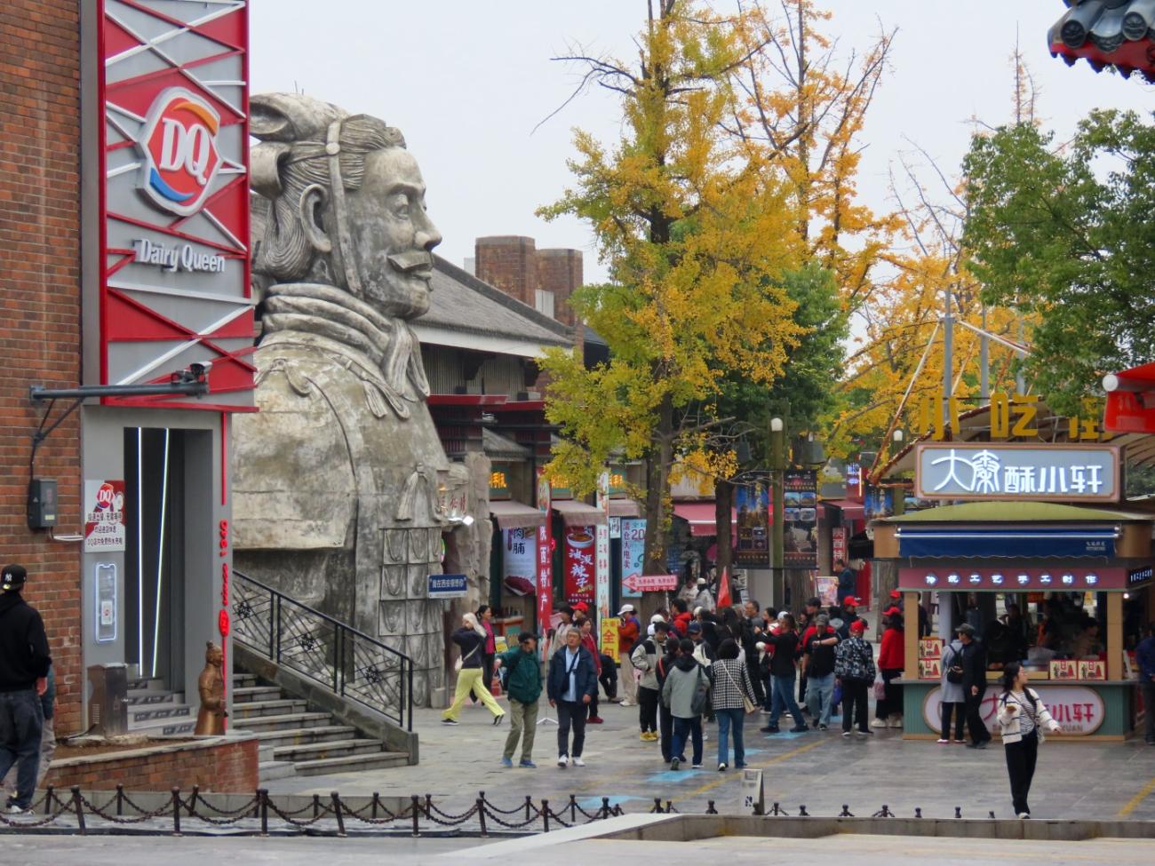 Vi har betalt en ret høj pris for en audioguide, som ikke er ret god, hvilket er lidt ærgerligt, men efter at have gået rundt i et meget stort område med utrolig mange restauranter og souvenirbutikker finder vi et sted tæt på udgangen, hvor vi kan returnere dem, og vi får heldigvis de fleste penge retur igen, da vi åbenbart har betalt et ret stort depositum. Det er ikke altid så nemt, når de fleste skilte kun står på kinesisk.