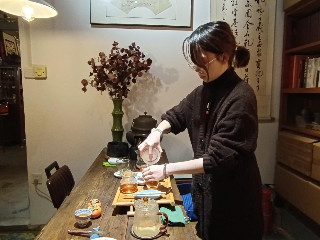Huanxi Jingchen Tea House besøger vi den første eftermiddag i Xi’an, og det er en rigtig god oplevelse, da vi lærer alt om, hvordan man laver te på kinesisk. Den unge pige er meget charmerende og bruger lang tid på at brygge teen, og vi får også serveret et par kager. Vi vender tilbage efter et stykke tid, men denne gang føler vi, at vi bliver snydt. Vi bestiller kun en enkelt te til deling denne gang, da der var rigeligt sidste gang; vi skal selv brygge teen; og vi får kun et par kiks til. Alligevel kommer vi af med samme beløb som sidst, så hun må have solgt os en meget dyr te denne gang.