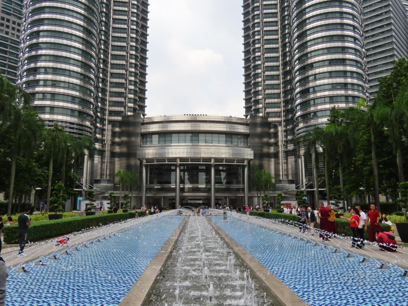 Vi besøger Petronas Towers fire gange i alt. Første gang er på vores guidede gåtur, og anden gang tager vi derop for at se og ikke mindst fotografere de flotte tårne udefra fra alle leder og kanter. Bagved tårnene ligger der en lille park med søen Simfoni Lake, foran er der et springvand, og i forbindelse med tårnene ligger indkøbscenteret Suria KLCC.