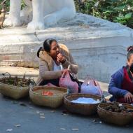 Her er mange flotte gamle og restaurerede huse, men man kan også godt fornemme, at Laos er et af de fattigste lande i Sydøstasien, og mange må leve af at sælge, hvad de kan dyrke og producere derhjemme. Der sættes riskager og bananer til tørring i solen rundt omkring, et sted bages der brød under åben ild, hvor brændslet er kokosnødder, og ældre kvinder går rundt og sælger frugt eller sidder på gaden med deres kurve, men vi ser ingen tiggere. Der er rigtig mange munke i gadebilledet, som er nemme at få øje på med deres orange tøj.