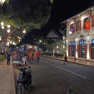 Der går en ensrettet vej rundt om halvøen, som ud til Nam Khan-floden hedder Kingsitsarath Rd og ud til Mekongfloden hedder Khem Kong. Den gennemgående hovedgade hedder i vores ende af byen Sakkaline Rd, og den skifter navn til Sisavangvong Rd, når man kommer til restauranten Sahai, der markerer starten på den del af hovedgaden, hvor man finder de fleste restauranter, og hvor der også er mest liv. Selvom det vil være synd at sige, at Luang Prabang er en by, hvor der er meget liv. Hele hovedgaden har et rigtig pænt fortov det meste af vejen, i hvert fald sammenlignet med mange andre steder, vi har boet, og her er også meget rent.