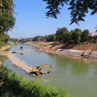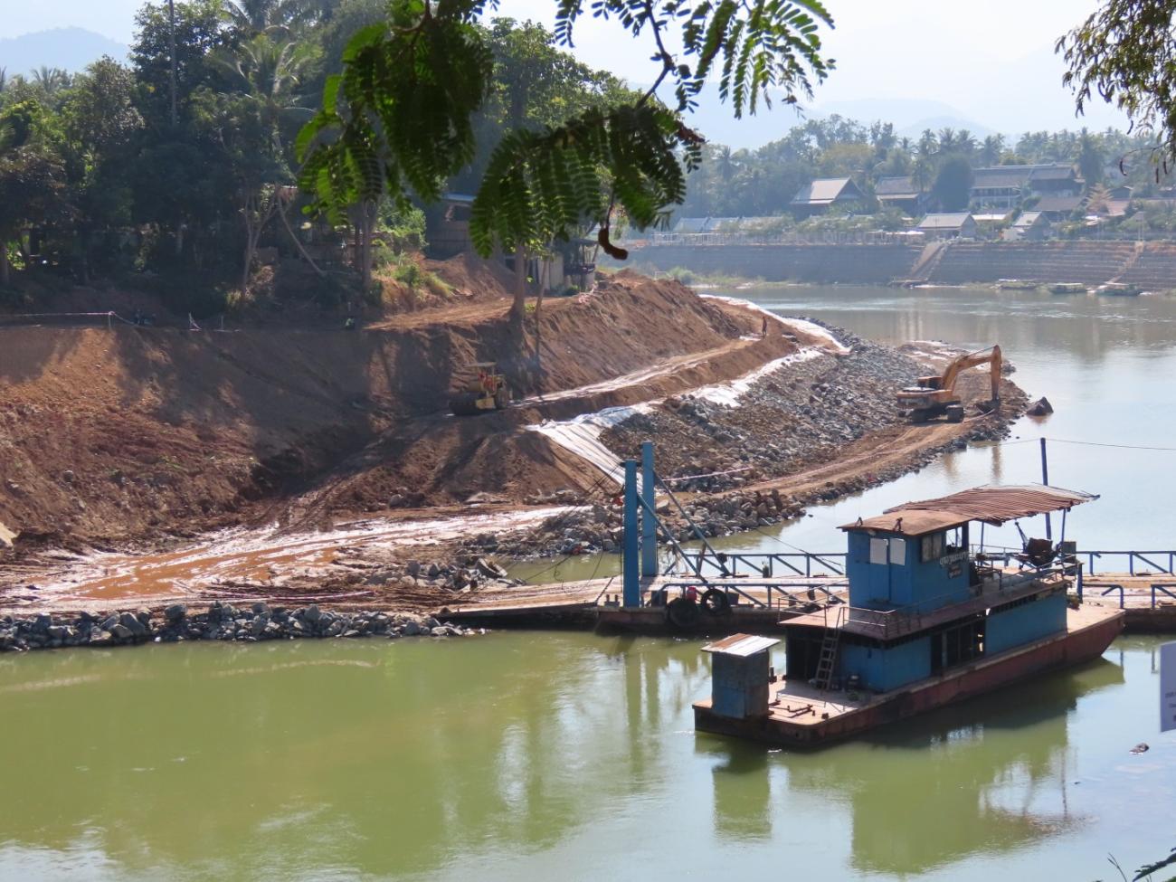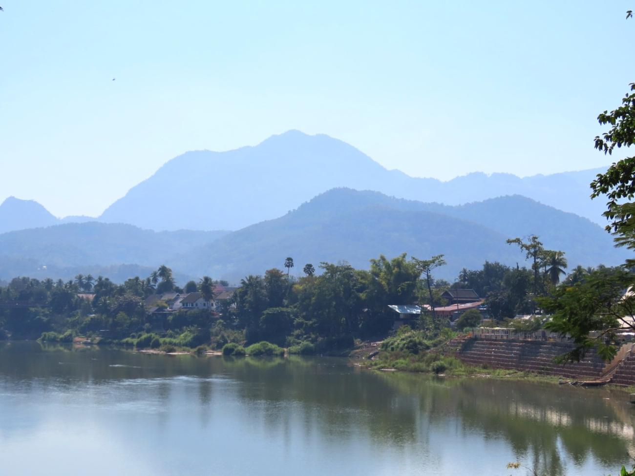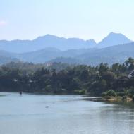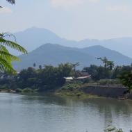 Luang Prabangs centrum, der ligger på en halvø, har Mekongfloden til den ene side og Nam Khan-floden til den anden. Vi går tit ture langs disse floder, men lige for øjeblikket sker der nu ikke så meget på Nam Khan-floden, eftersom byen blev ramt af kraftige oversvømmelser i september måned, og da man stadig er i gang med at udbedre skaderne herfra. Det giver en del larm i dagtimerne. Normalt vil der på denne tid af året, hvilket vil sige uden for regntiden, være opført en lille bro, så man kan komme over på den anden side, men den er af samme grund ikke lavet i år. Der er imidlertidig en rigtig flot udsigt til bjergene syd for byen.