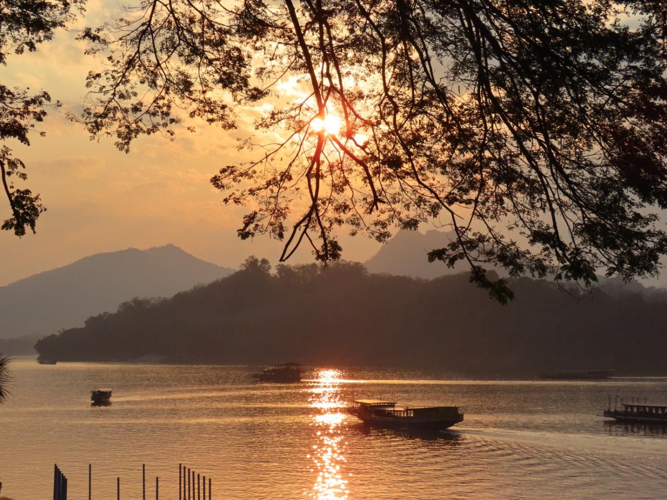 Langs bredden ligger restauranterne på stribe, men langt de fleste er meget lokale steder med mad, som Hanne ikke kan tåle, og de ser nu heller ikke specielt hygiejniske ud. Vi spiser dog på en af dem en enkelt gang, hvilket er hyggeligt. Der er også flere af stederne, hvor man kan sidde og nyde solnedgangen, og det gør vi også et par gange. Her gælder det om at finde et sted, hvor man har et godt udsyn til bjergene, og hvor træerne ikke står i vejen. Der er desværre en del affald på skrænterne ned til floden, hvilket er en skam, men det er også vores indtryk, at en del af det rod, der er, stammer fra oversvømmelserne, som man ikke har fået ryddet op efter endnu.