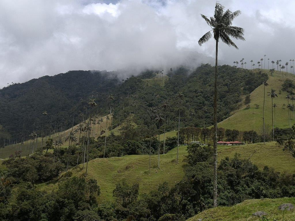 Valle de Cocora er især kendt for sine utrolig høje vokspalmer. Det er verdens højeste palmeart, og de bliver op til 60 m høje. De vokser i de nordlige Andesbjerge, og man skraber voks af stammen og under bladene, når de er fældet; voksen bruges til lys. Vi har ikke sat os så meget ind i tingene, men siger nej til en tur på hesteryg og begynder at gå – hele området er utrolig smukt. Vi kommer til et billetkontor, hvor der står, at man skal følge stien op til El Bosque de Las Palmas og derfra videre til et par udsigtspunkter, hvor man kan tage en sti ned ved det første udsigtspunkt; en tur på i alt ca. halvanden time. Vi begiver os opad og oplever både fuld sol, tåge og regn, hvilket er lidt specielt. Området med palmerne er virkelig flot, og selvom det går opad, overlever vi turen op til det første udsigtspunkt, hvor vi vælger at tage den anden sti ned. Vi møder i øvrigt et par israelere på vejen, som vi snakker lidt med. Vi fortryder lidt, at vi tager den anden sti ned, da den slet ikke er beregnet til, at man har sneakers på. Flere steder er der ikke rigtig nogen sti, og andre steder er det ret mudret, så Hanne ender med at gå i spagat (næsten i hvert fald).