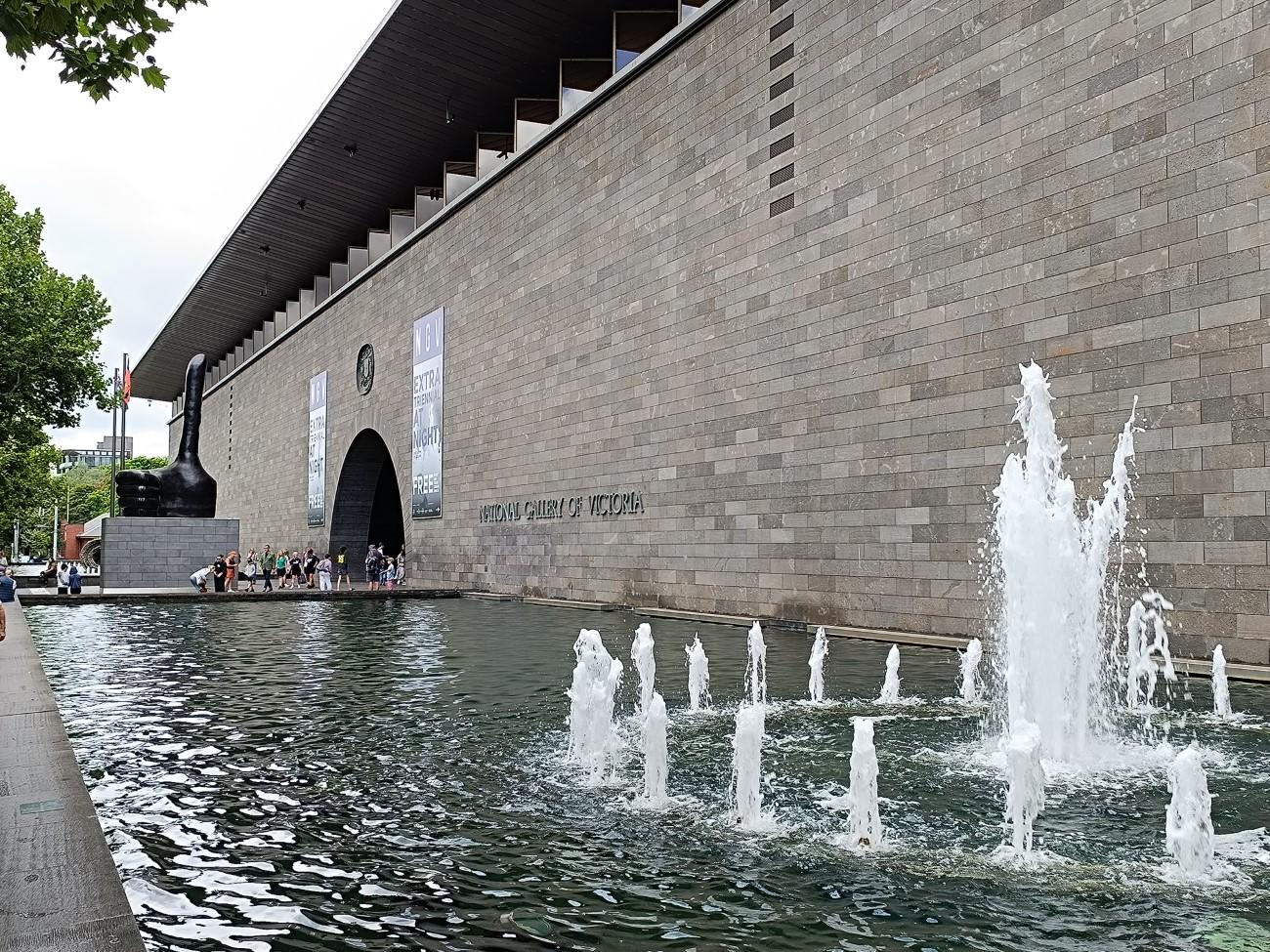 National Gallery of Victoria (NGV) er det ældste og mest besøgte kunstmuseum i Australien; det er placeret to forskellige steder i byen, og begge steder er det gratis at komme ind. NGV International ligger i området Southbank i en meget stor og flot bygning, og der er meget spændende kunst. Vi kan især godt lide, at man i de enkelte rum har blandet gammelt og nyere kunst, hvilket fungerer rigtig godt, og der er også en spændende videoinstallation, som vi bruger noget tid på, hvilket ellers normalt ikke er os.