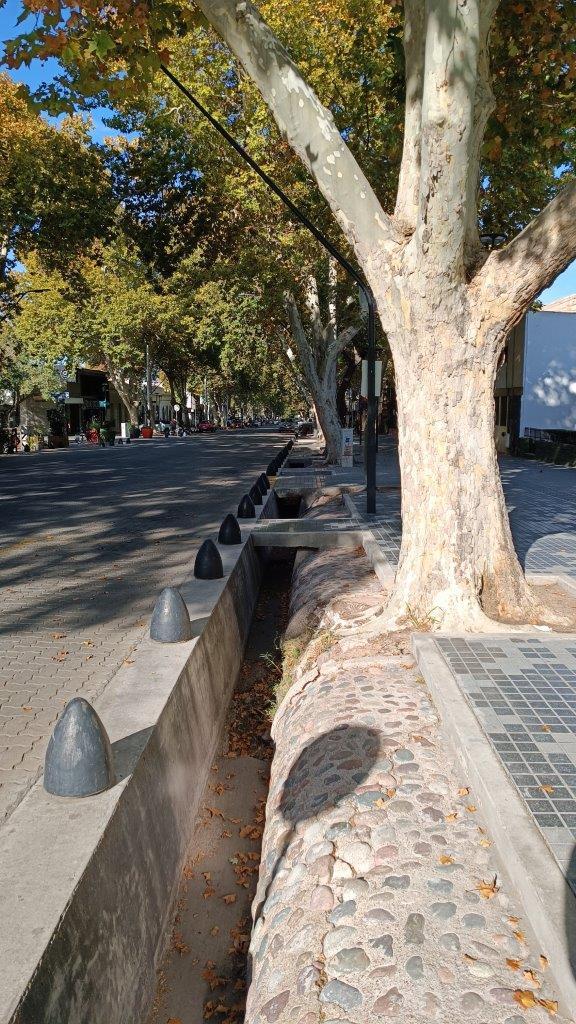 Et særligt kendetegn ved Mendoza er, at de 80.000 træer kunstvandes ved hjælp af et større system af acequias, som er gravede, stenforede vandingskanaler på omkring en meters dybde og bredde. Dette kanalsystem daterer sig til før spaniernes ankomst. Et særligt vandingslaug åbner og lukker dagligt sluseporte ved hovedkanalerne, så den enkelte acequia får tilført en nøje afmålt vandmængde. Det skifter hen over ugen, så man ved aldrig, hvilke kanaler der får tilført vand den pågældende dag. I folkemunde kaldes en acequia for en Yanqui trap (amerikanerfælde), fordi ret mange turister uforvarende er faldet i dem i nattens mulm og mørke. Man kan tydeligt se, at de lokale er vokset op med disse kanaler, da de uden problemer hopper over de ret brede kanaler, når de står ud ad busser og biler.
