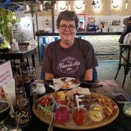 Pho Town ligger lige ved siden af vores bygning, og her kommer vi to gange. Det er en vietnamesisk restaurant med speciale i vietnamesisk nudelsuppe, der hedder pho, og den er meget billig, men menukortet er ret begrænset. Smashed Burger Co. ligger på gaden bag vores bygning, og de har gode burgere, og vi kommer nogle gange. Jens Peter tager oftest den australske med rødbede og Hanne den med brie. På samme vej ligger Chez Rami, hvor vi køber lækre specialiteter, men vi spiser her kun en enkelt gang. Vi er helt alene, og portionerne er usædvanligt små. Le Point Cafe&Bistro ligger på samme vej, men ud mod den brede vej østpå. Maden smager udmærket, men også her er portionerne lige små nok. Japanese Restaurant Roku ligger i modsat retning, og her er vi to gange. Vi får begge gange tonkatsu, og her er ret billigt.