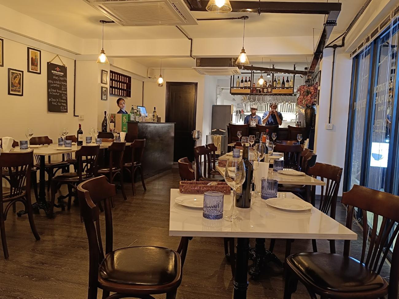 Et par gader nordpå ligger den franske vinbar Bouchon Wine Bar, hvor vi får lækker tapas på vores kærestedag, og i samme retning ligger den franske restaurant La Ferme de Bassac Restaurant, som vi besøger en enkelt gang. Vi får tre retter, og maden er rigtig god, men også dyr. Næsten lige ved siden af ligger Le Deli Bistro Gourmet, som også er fransk, men noget billigere. Vi opdager den for sent, så vi når kun to besøg; maden er ellers virkelig lækker. Stilen er fransk bistro med købmandsbutik, og vi køber ost med hjem den ene gang.