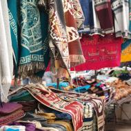 Efter besøg på rosengartneriet kører vi til byen Otavalo, som er kendt for sit store marked med håndlavede ting, primært tekstiler, herunder tasker, tæpper, tørklæder, bluser og ponchoer. Det skulle være størst her om lørdagen, men der er nu slet ikke så mange besøgende, hvilket nok desværre skyldes de manglende turister i landet. Det er et af de største markeder af sin art i Latinamerika, og der er også mange flotte og farvestrålende ting, men de fleste sælger de samme varer, så mere spændende er det heller ikke. Måske vi også bare har set så mange markeder efterhånden.