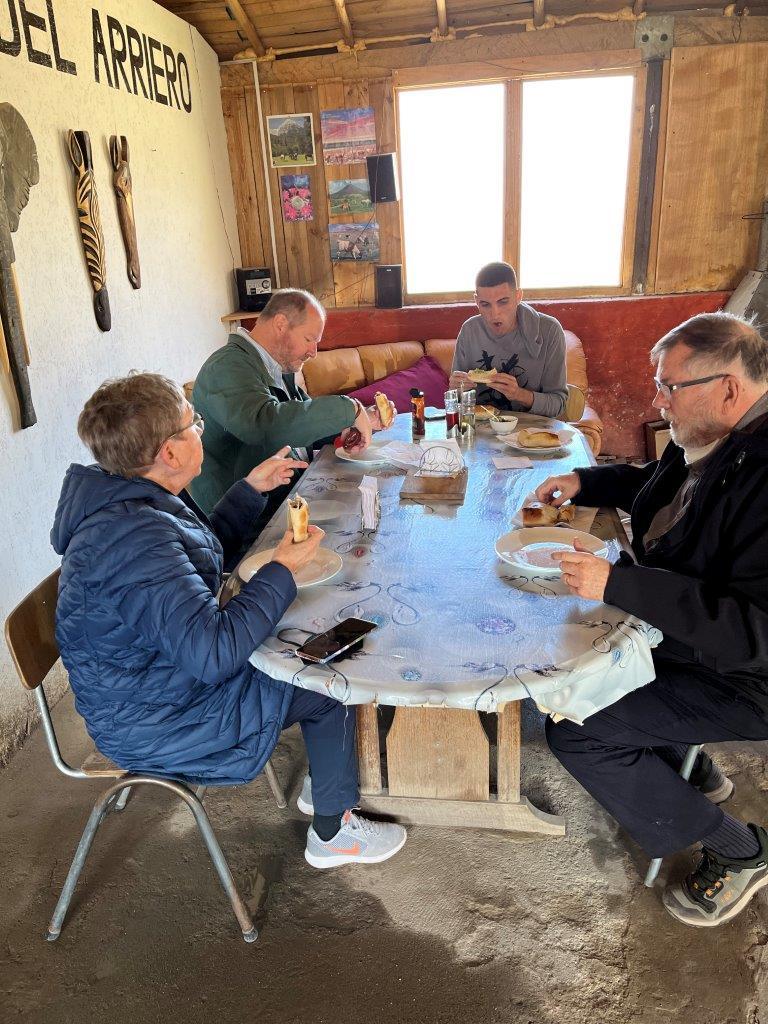 På vej tilbage holder vi ind et sted, hvor vi får serveret en empanada, som skal gøre det ud for dagens frokost – vi havde forventet noget lidt andet. De ansatte på stedet er i øvrigt ikke særlig høflige og vil have betaling for, at vi bruger toilettet. Det er vores guide heller ikke specielt tilfreds med, men han betaler for os allesammen. Vi har det nu rigtig hyggeligt med de andre, mens vi spiser, og hører om alle deres rejser. Sidste punkt på programmet er et stop ved et berømt ishus i schweizerstil, hvor vi køber en lækker is for egen regning.