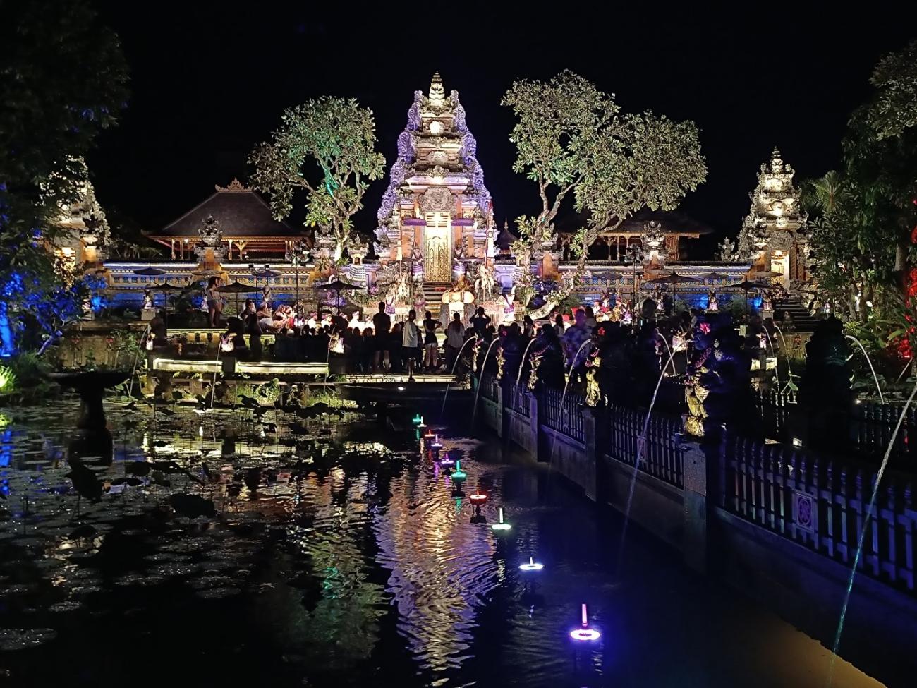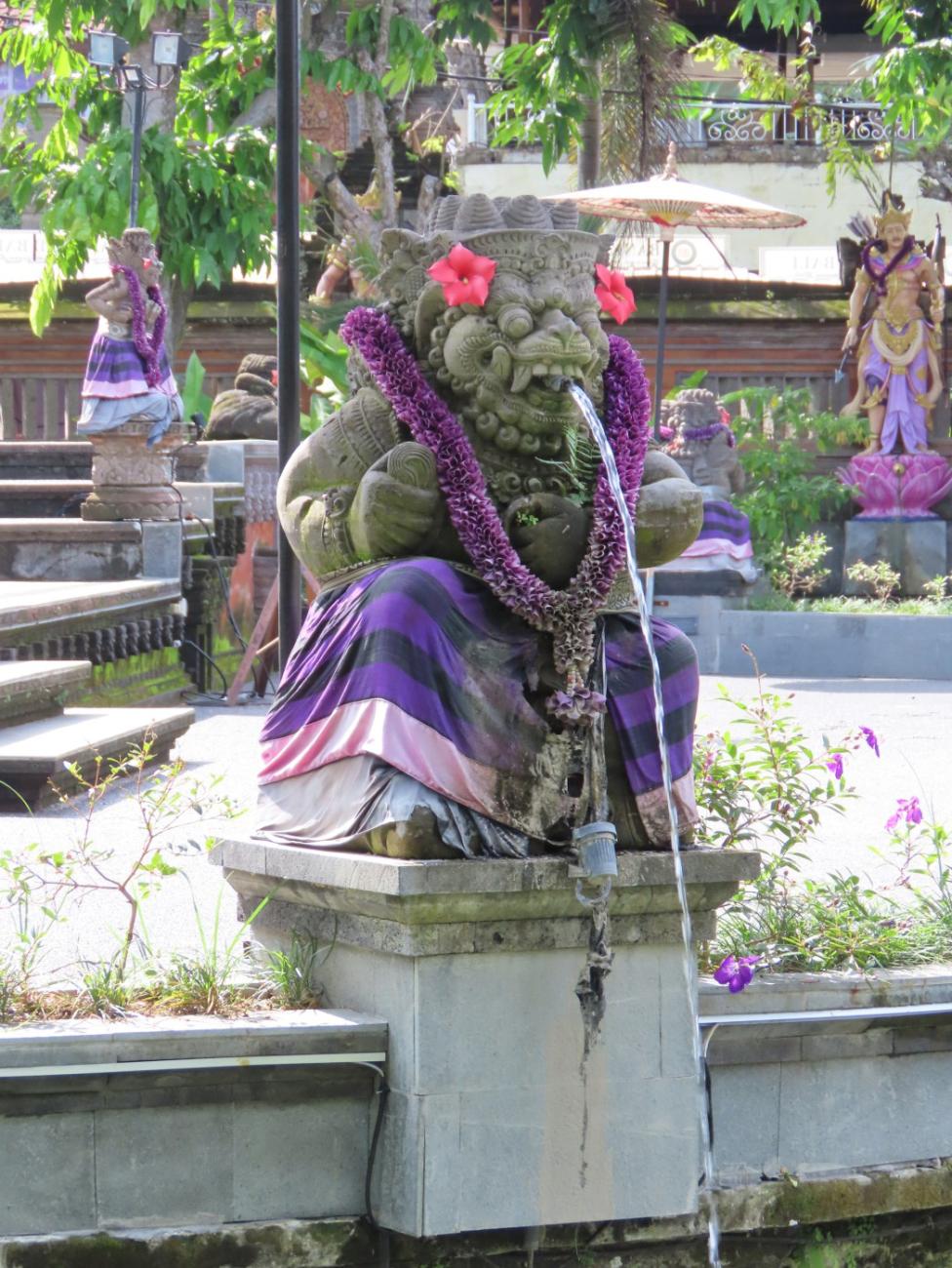 Ubud Water Palace er et forholdsvis nyt hinduistisk tempel i forhold til nogle af de meget gamle templer på Bali, idet det stod færdigt i 1952; det blev bygget af en af Ubud-prinserne. Templet er kendt for de smukke lotusdamme og de mange springvand, og dammene, der er placeret uden for templet, er den eneste del, der er åben for besøgende. Her er virkelig smukt, og vi tager en masse billeder, men vi er også enige om at springe danseshowet om aftenen over, da vi efterhånden har hørt musikken og set noget af dansen fra terrassen flere gange.